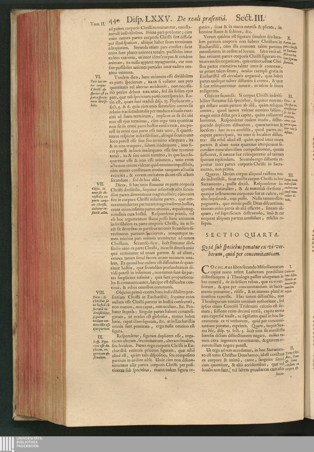 Disputatio LXXV. De Sacramentali præsentia Christi in Eucharistia.