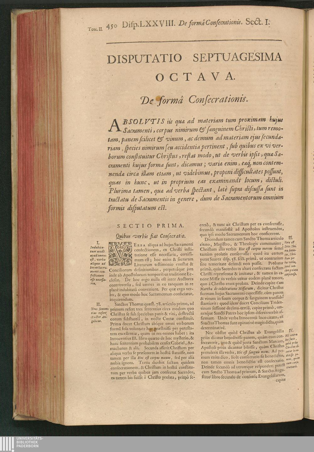 Dispvtatio LXXVIII. De formâ consecrationis.