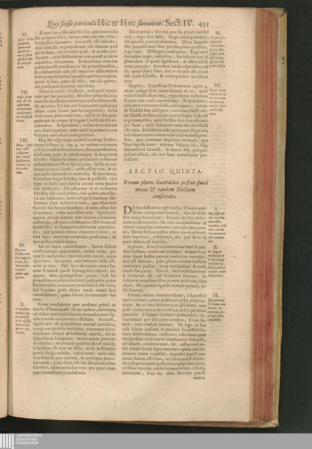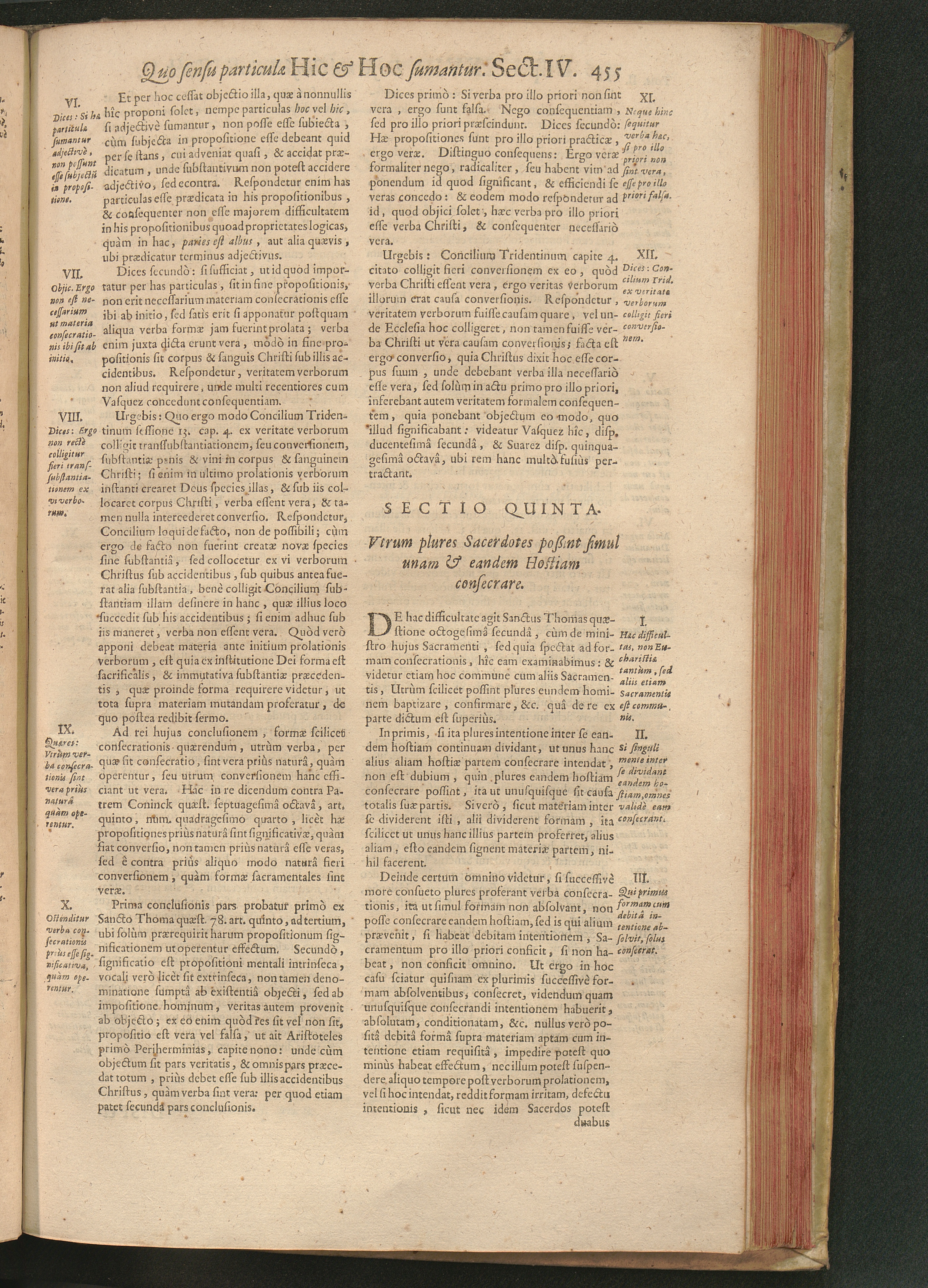Sect. V. Vtrùm plures Sacerdotes poßint simul unam & eandem hostiam consecrare.