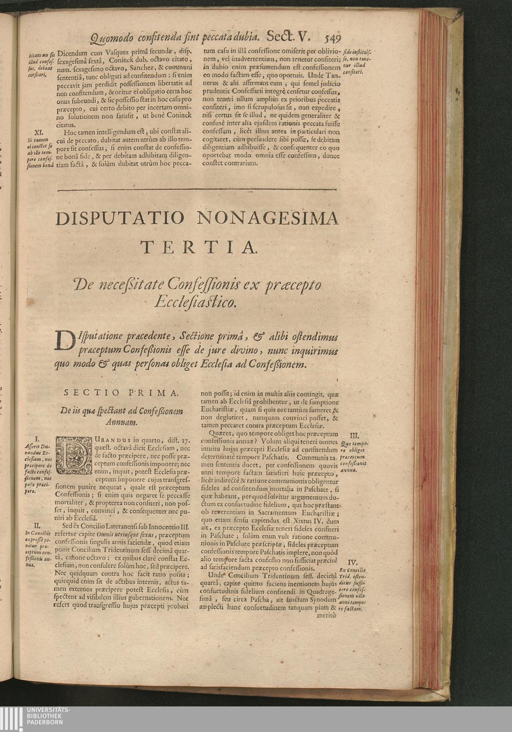 Dispvtatio XCIII. De neceßitate Confeßionis ex præcepto Ecclesiastico.