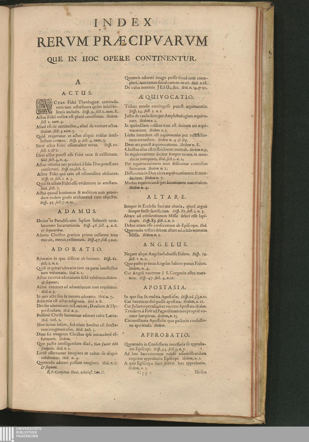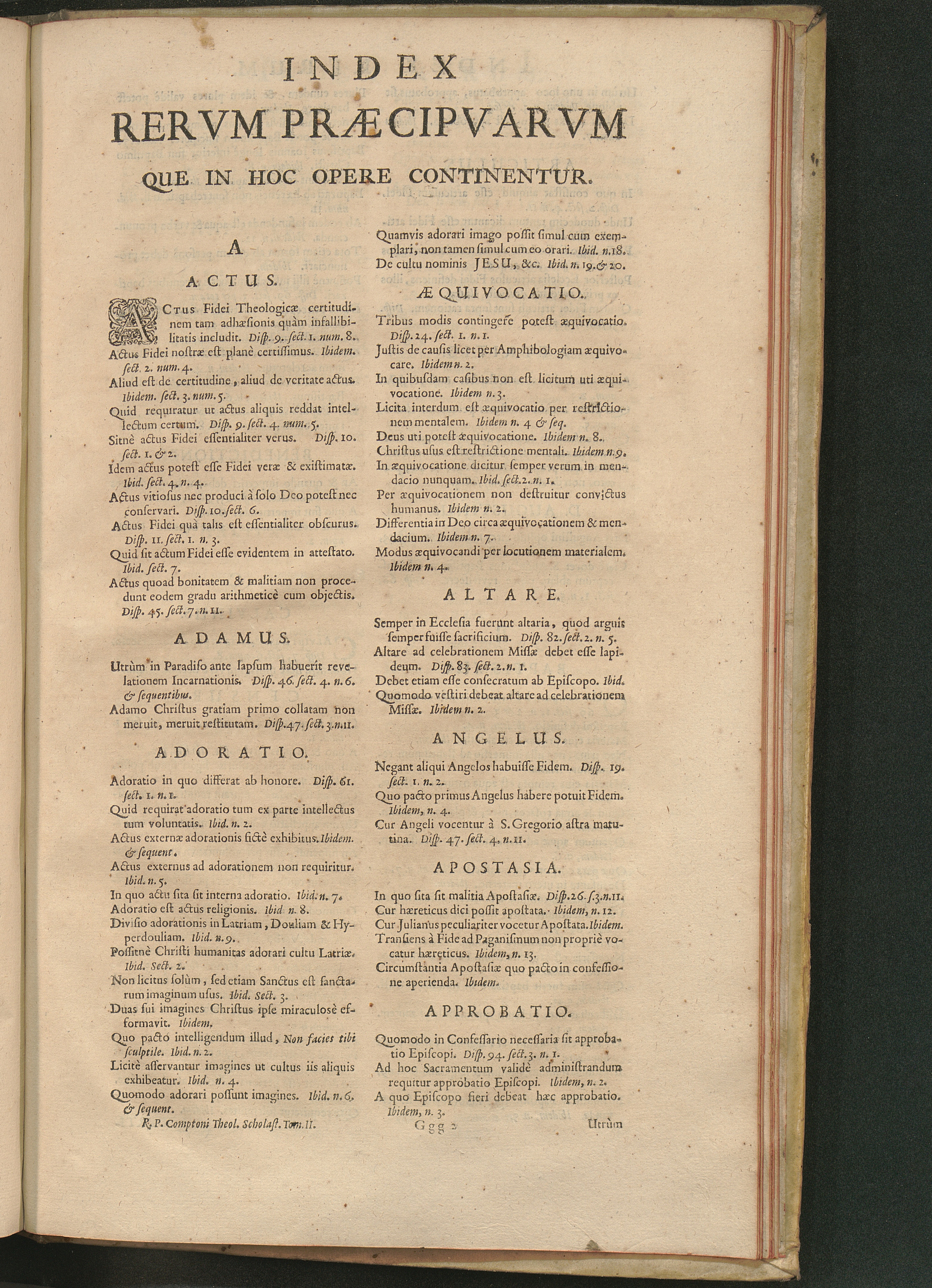 Index Rervm Præcipvarvm Que In Hoc Opere Continentur.
