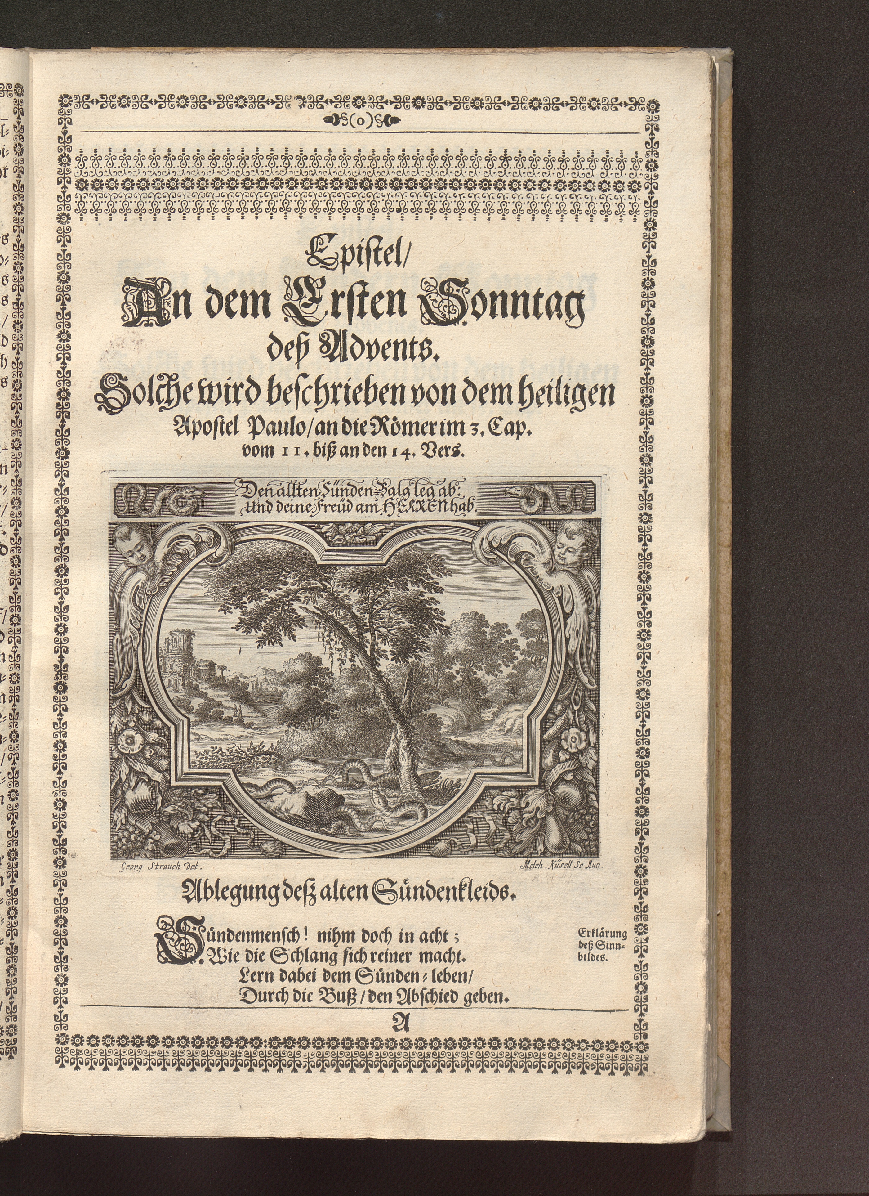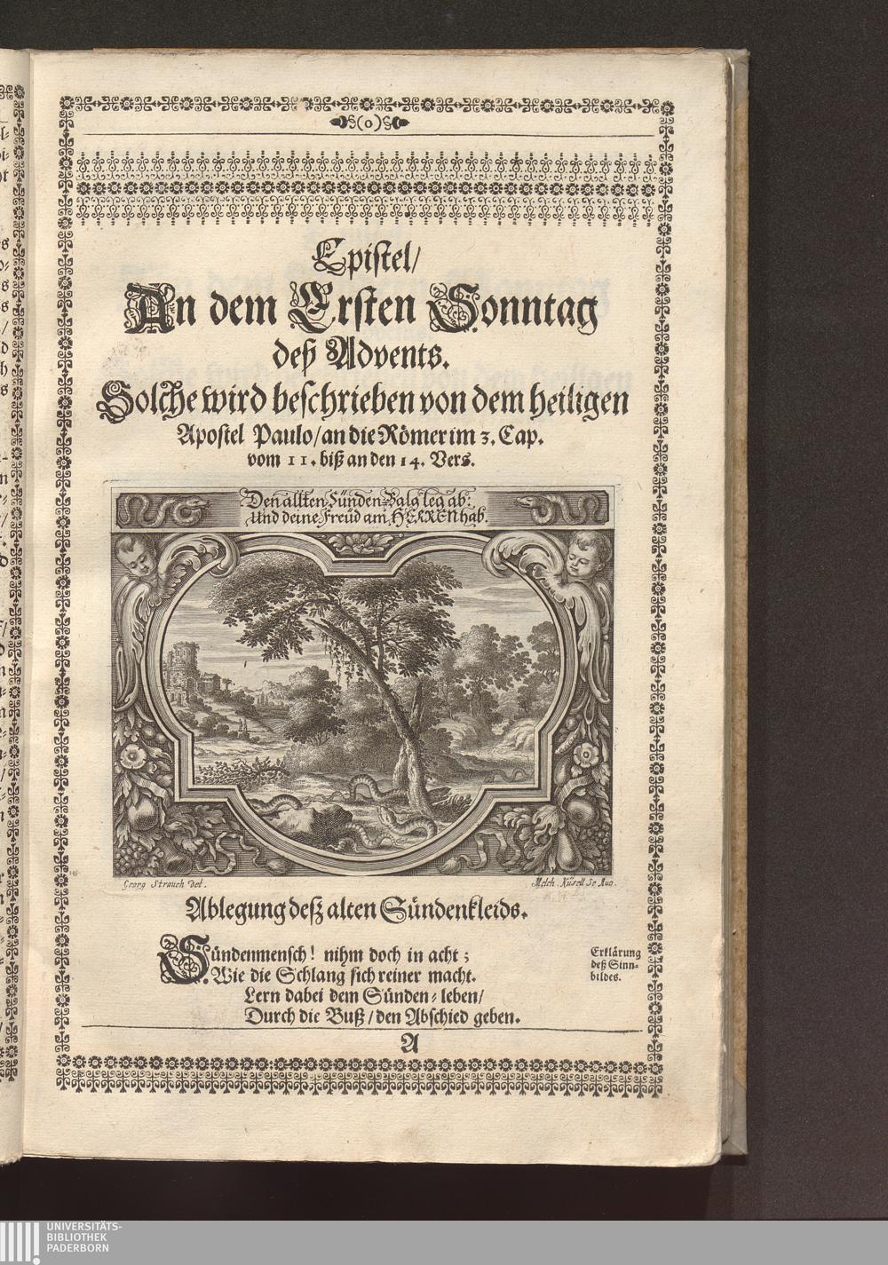 Heilig-Epistolischer Bericht und Licht / I. M. D. Inv. Georg Strauch delineavit. Melchior Küsell sculps.