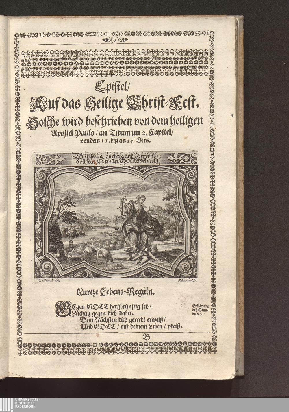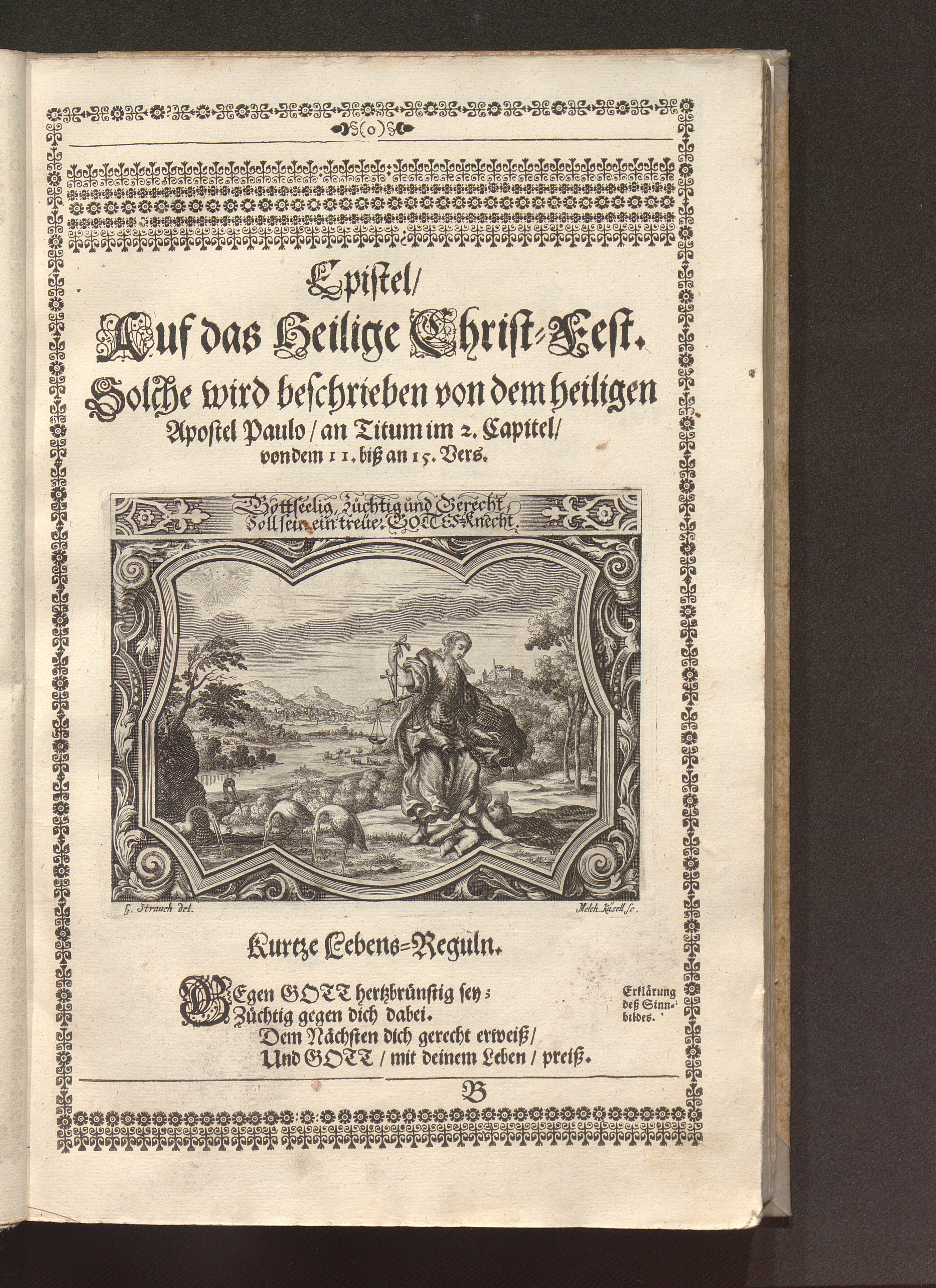 Heilig-Epistolischer Bericht und Licht / I. M. D. Inv. Georg Strauch delineavit. Melchior Küsell sculps.