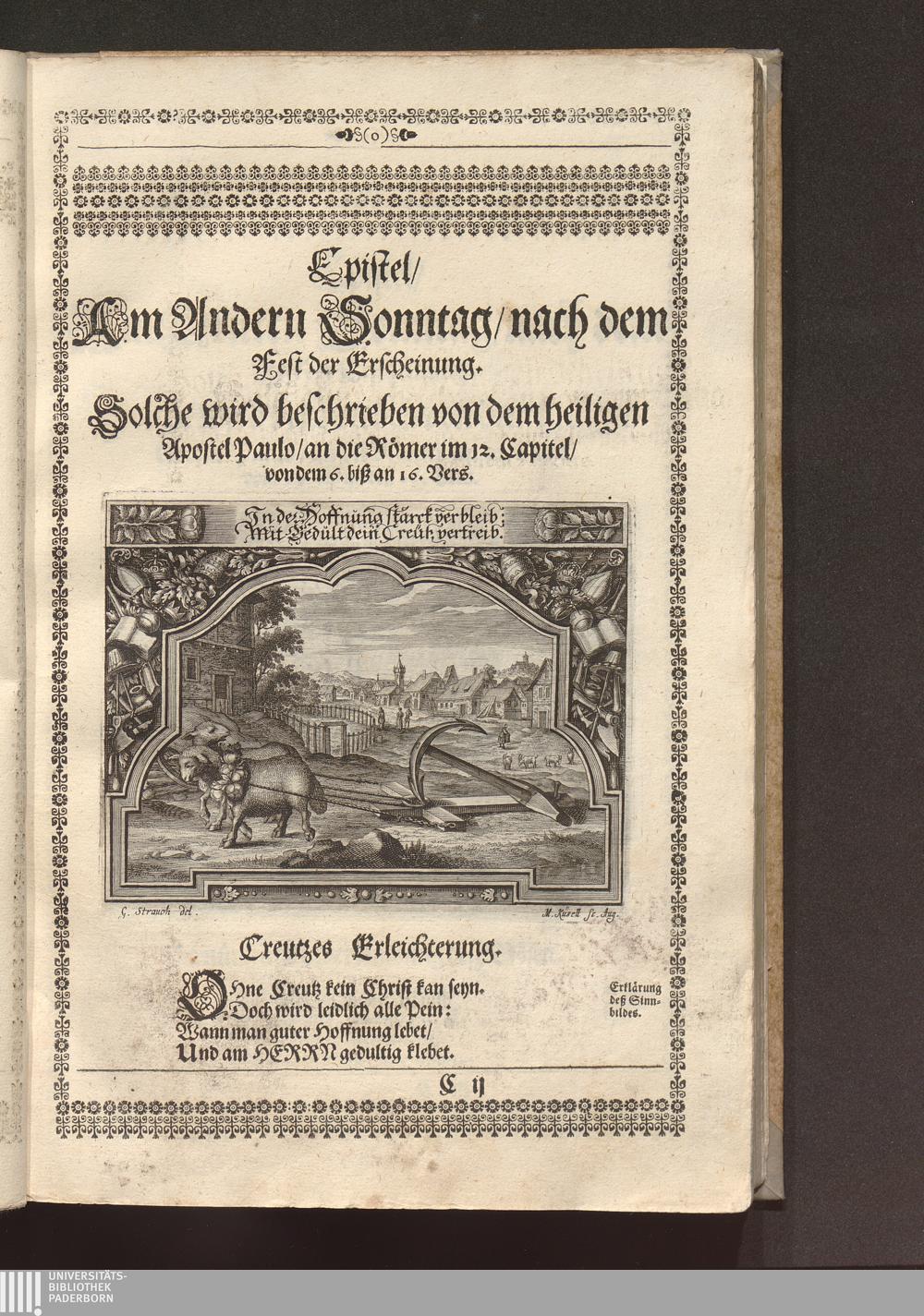 Heilig-Epistolischer Bericht und Licht / I. M. D. Inv. Georg Strauch delineavit. Melchior Küsell sculps.