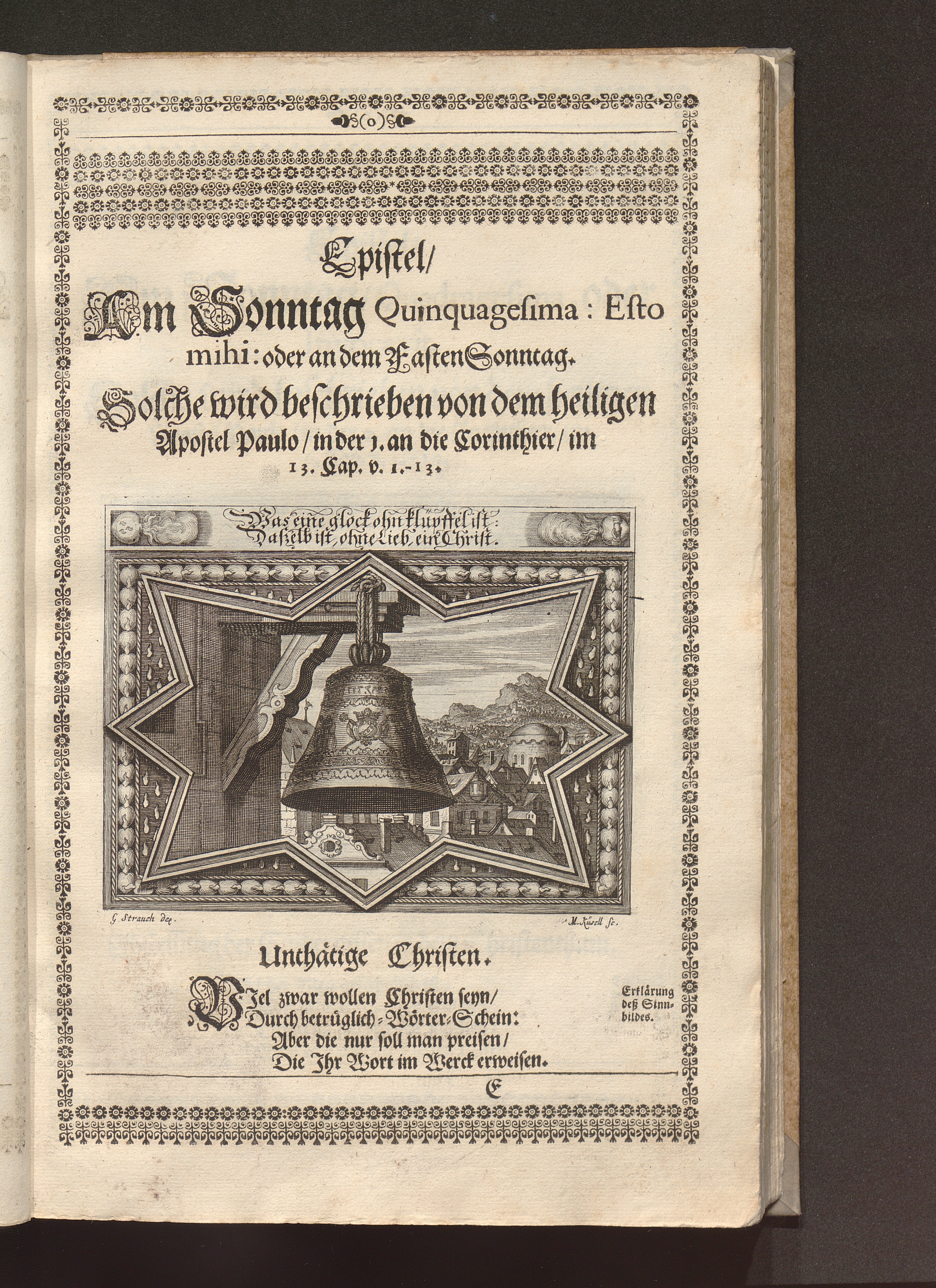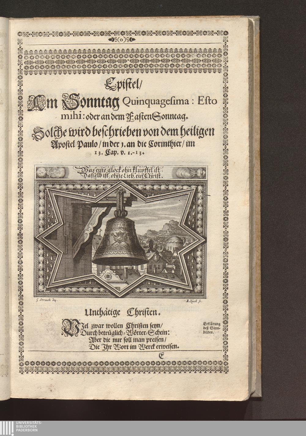 Heilig-Epistolischer Bericht und Licht / I. M. D. Inv. Georg Strauch delineavit. Melchior Küsell sculps.