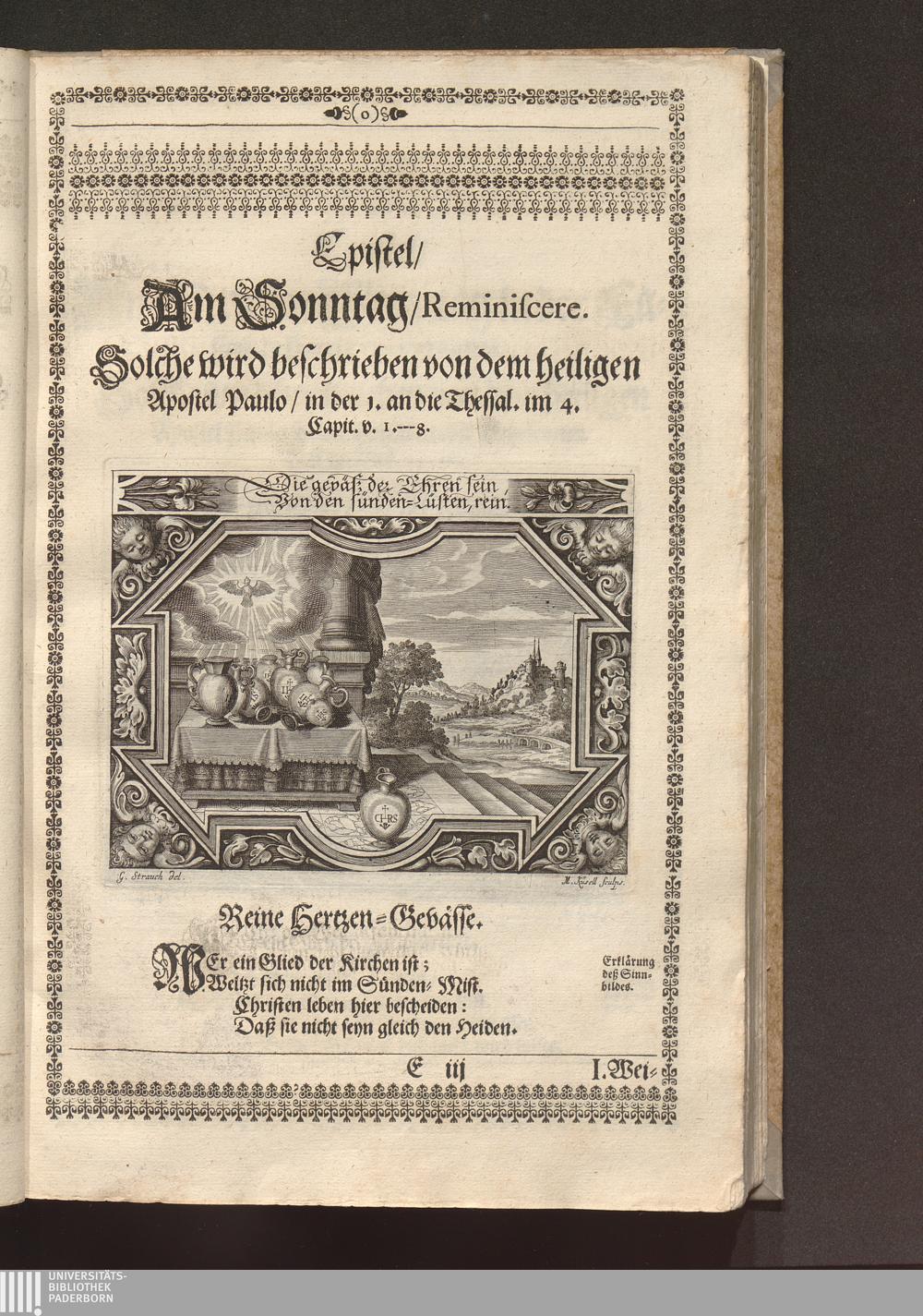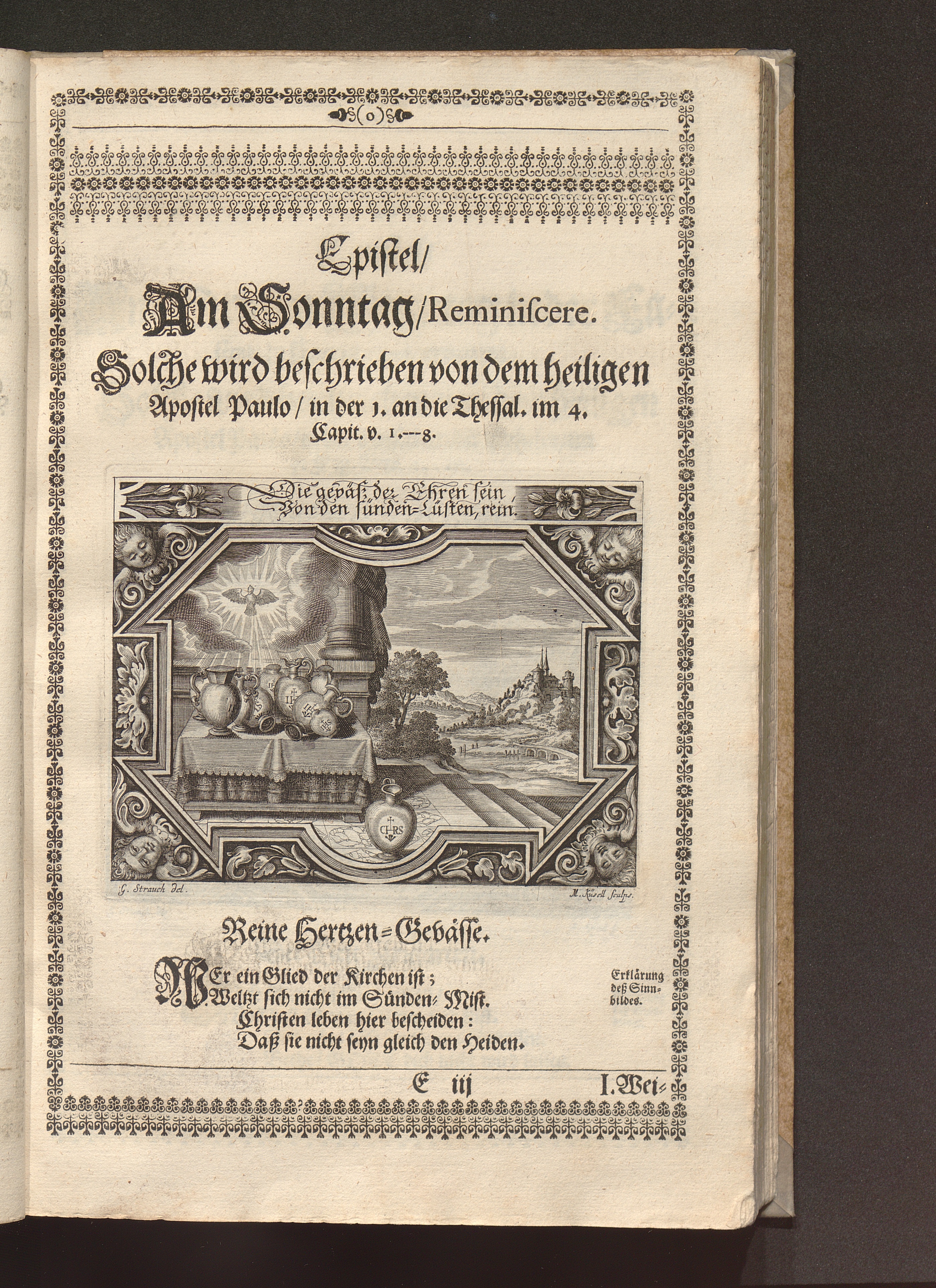 Heilig-Epistolischer Bericht und Licht / I. M. D. Inv. Georg Strauch delineavit. Melchior Küsell sculps.