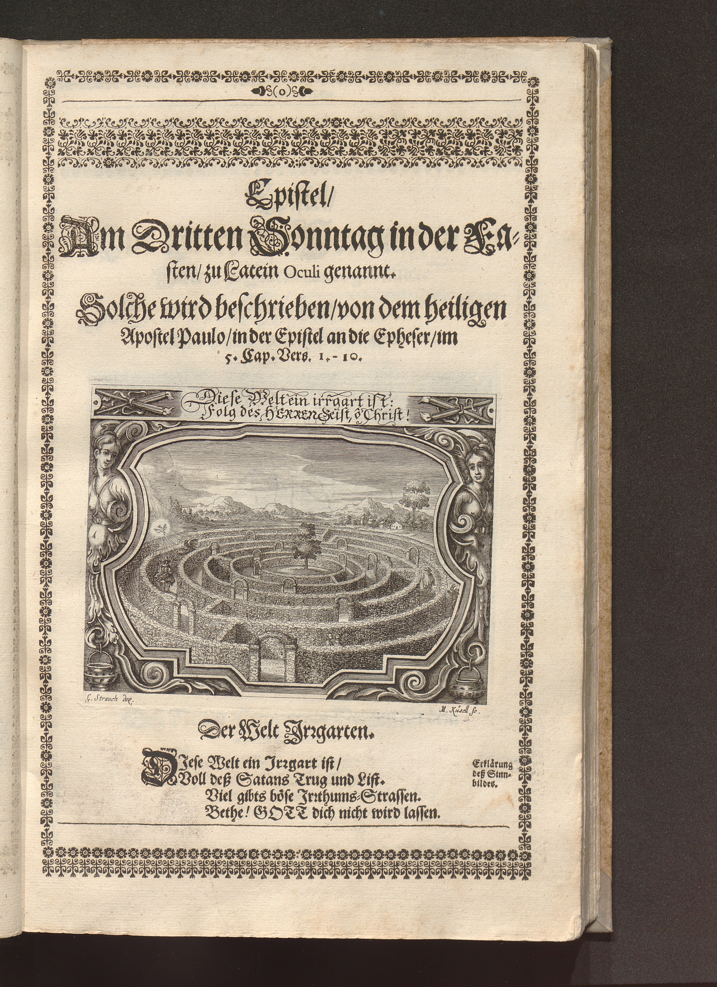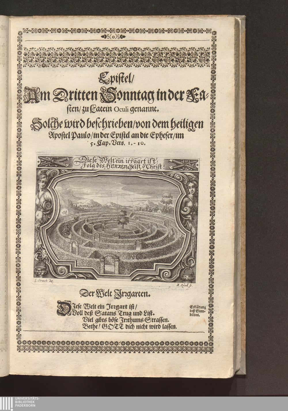 Heilig-Epistolischer Bericht und Licht / I. M. D. Inv. Georg Strauch delineavit. Melchior Küsell sculps.