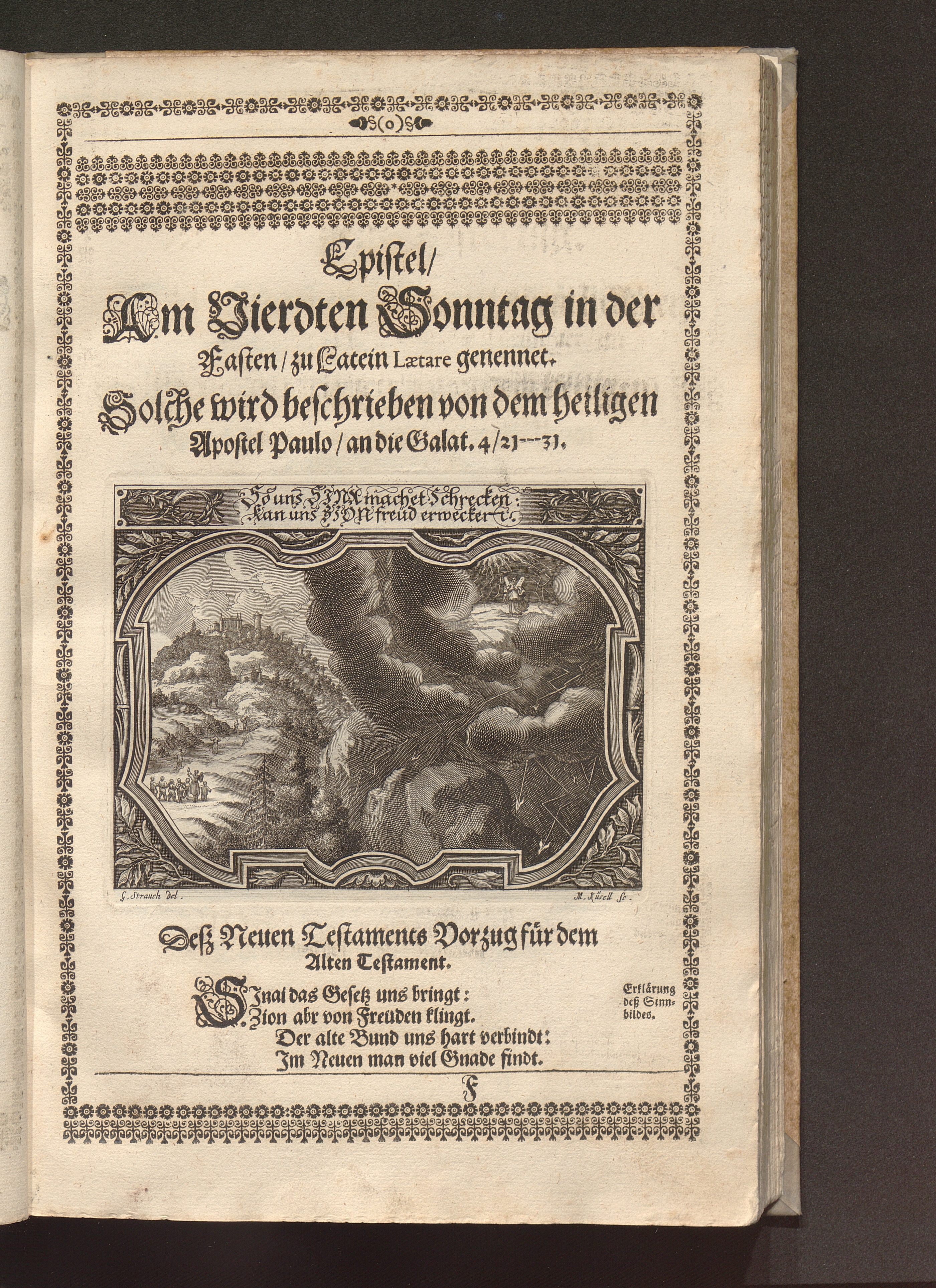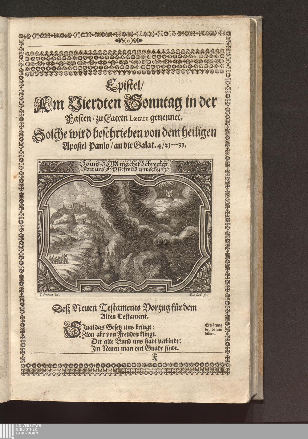Heilig-Epistolischer Bericht und Licht / I. M. D. Inv. Georg Strauch delineavit. Melchior Küsell sculps.