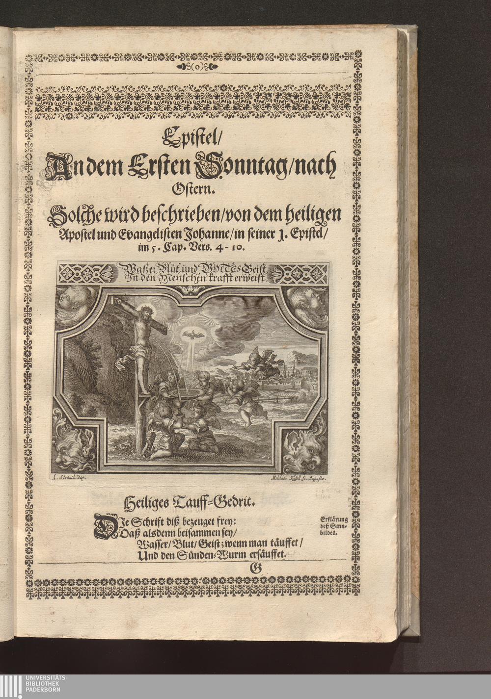 Heilig-Epistolischer Bericht und Licht / I. M. D. Inv. Georg Strauch delineavit. Melchior Küsell sculps.