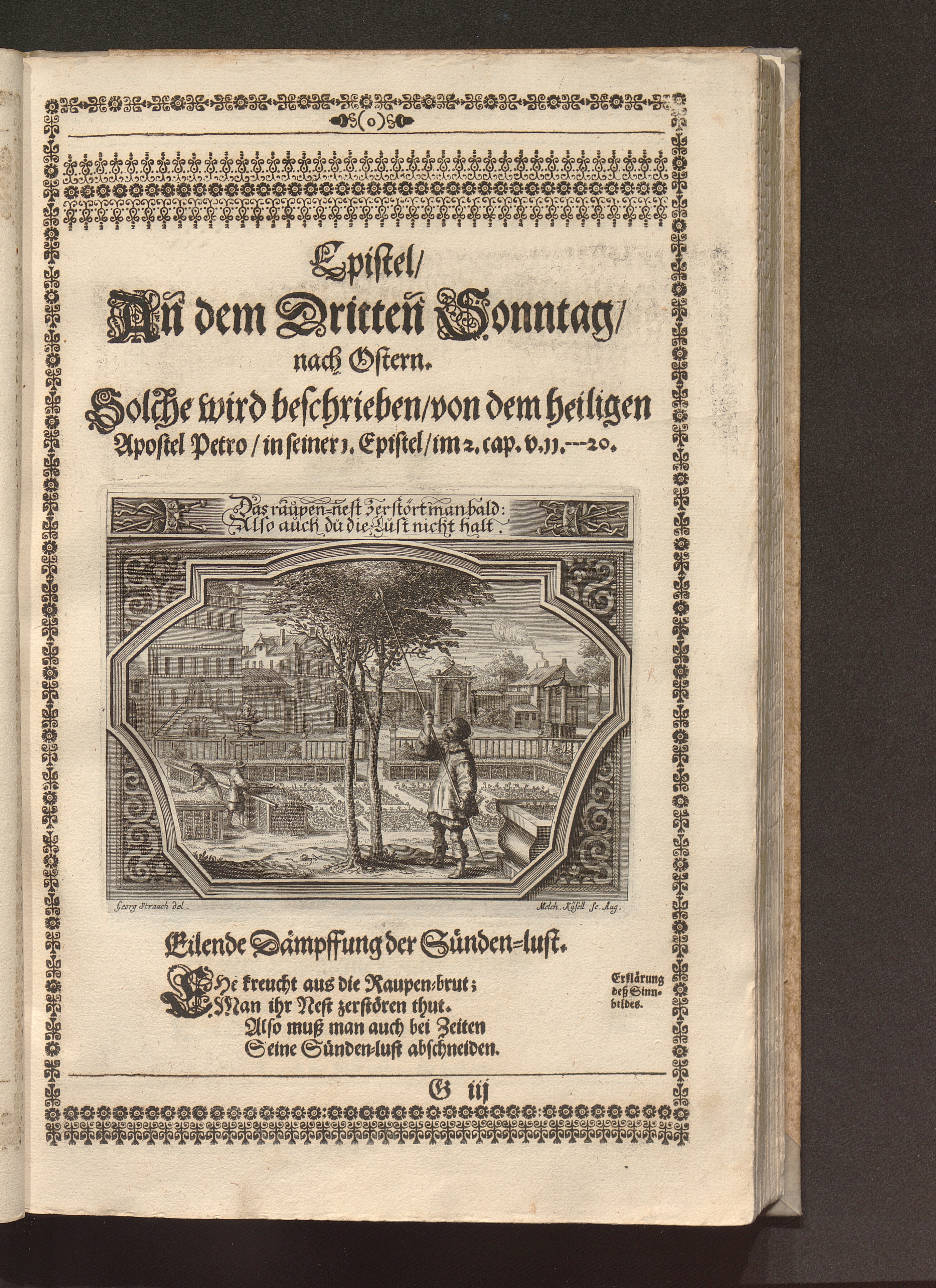 Heilig-Epistolischer Bericht und Licht / I. M. D. Inv. Georg Strauch delineavit. Melchior Küsell sculps.