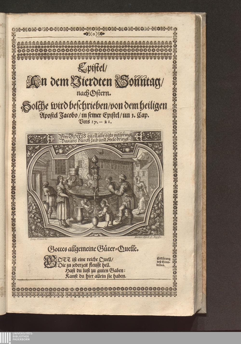 Heilig-Epistolischer Bericht und Licht / I. M. D. Inv. Georg Strauch delineavit. Melchior Küsell sculps.