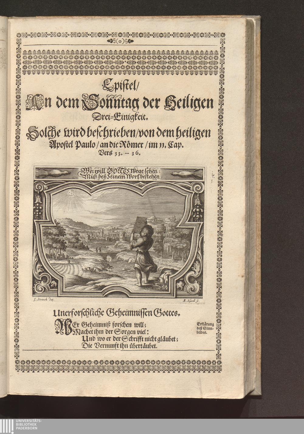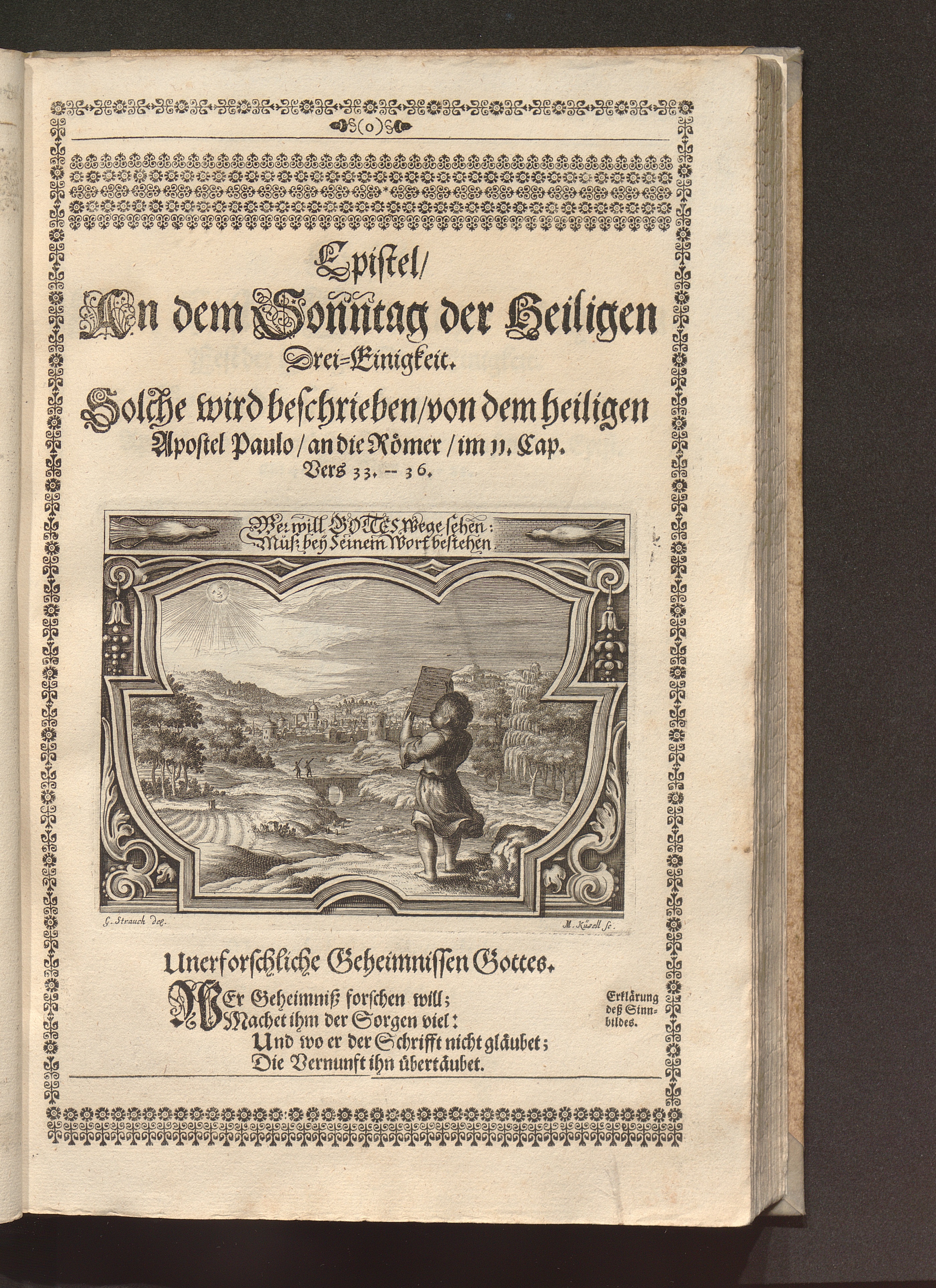Heilig-Epistolischer Bericht und Licht / I. M. D. Inv. Georg Strauch delineavit. Melchior Küsell sculps.