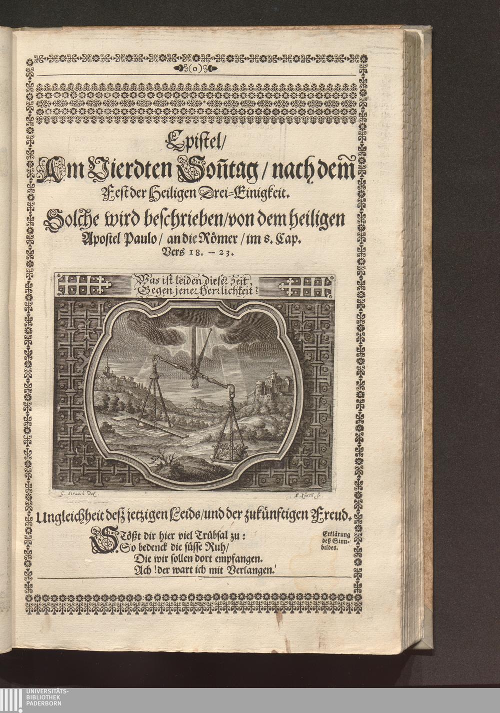 Heilig-Epistolischer Bericht und Licht / I. M. D. Inv. Georg Strauch delineavit. Melchior Küsell sculps.