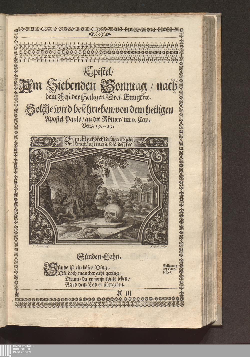 Heilig-Epistolischer Bericht und Licht / I. M. D. Inv. Georg Strauch delineavit. Melchior Küsell sculps.