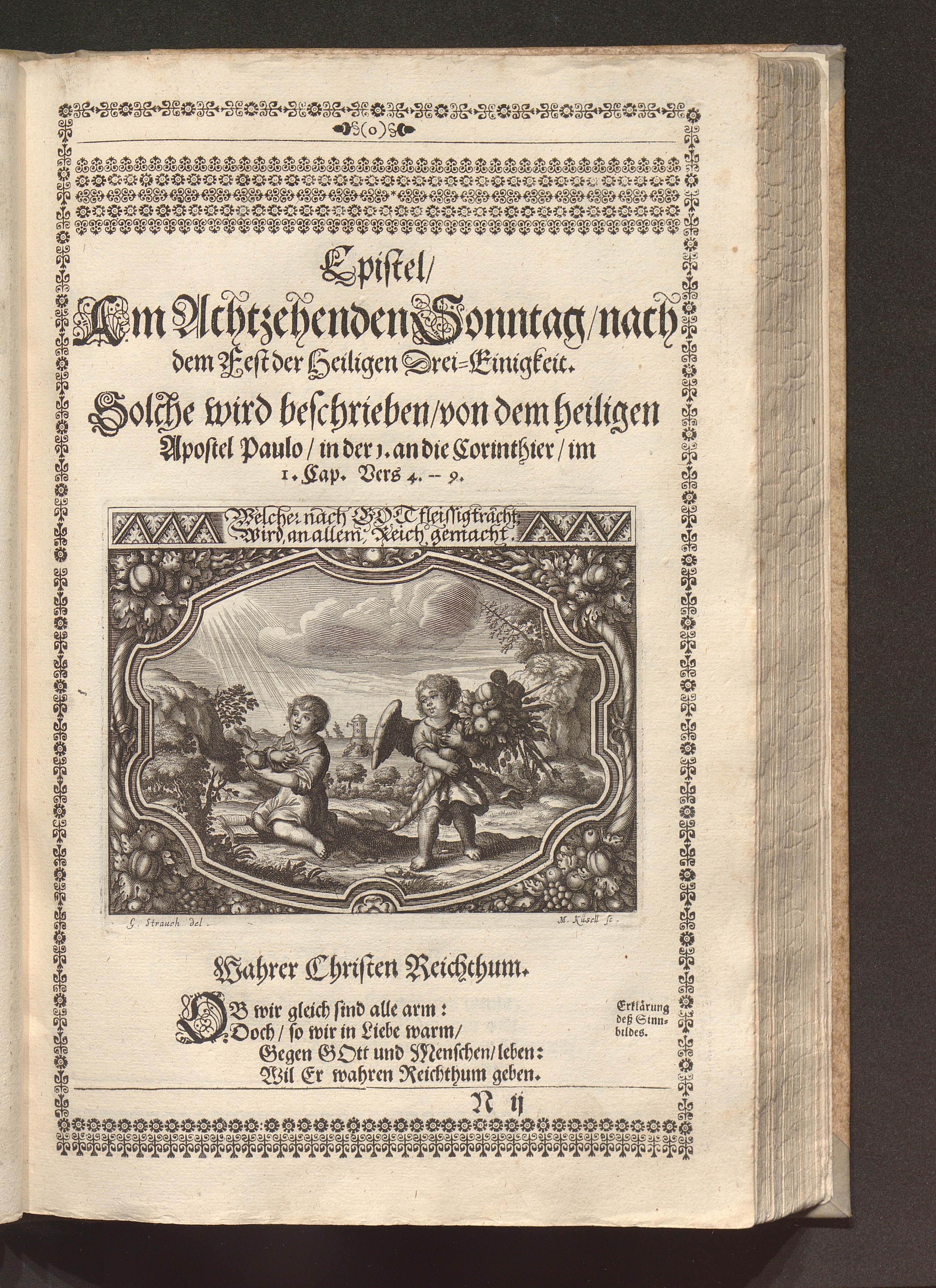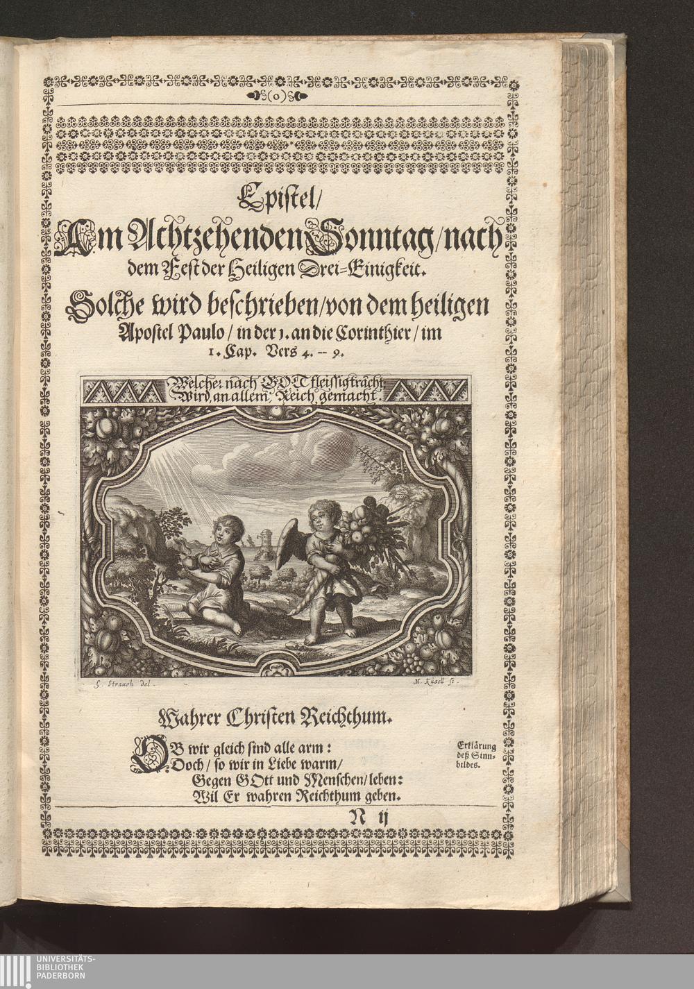 Heilig-Epistolischer Bericht und Licht / I. M. D. Inv. Georg Strauch delineavit. Melchior Küsell sculps.