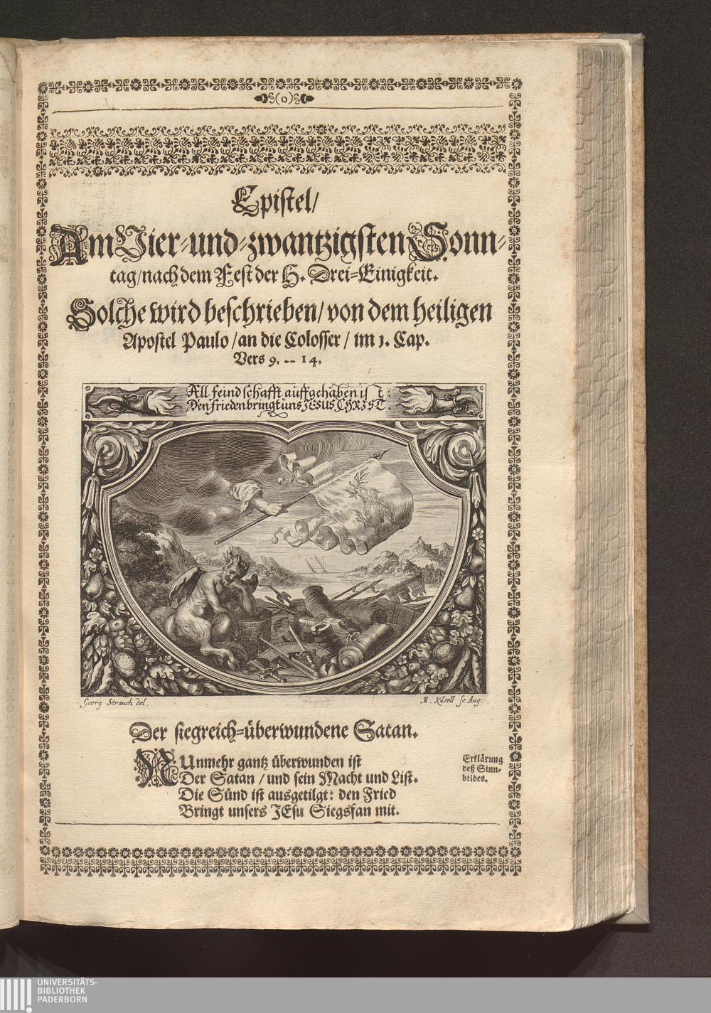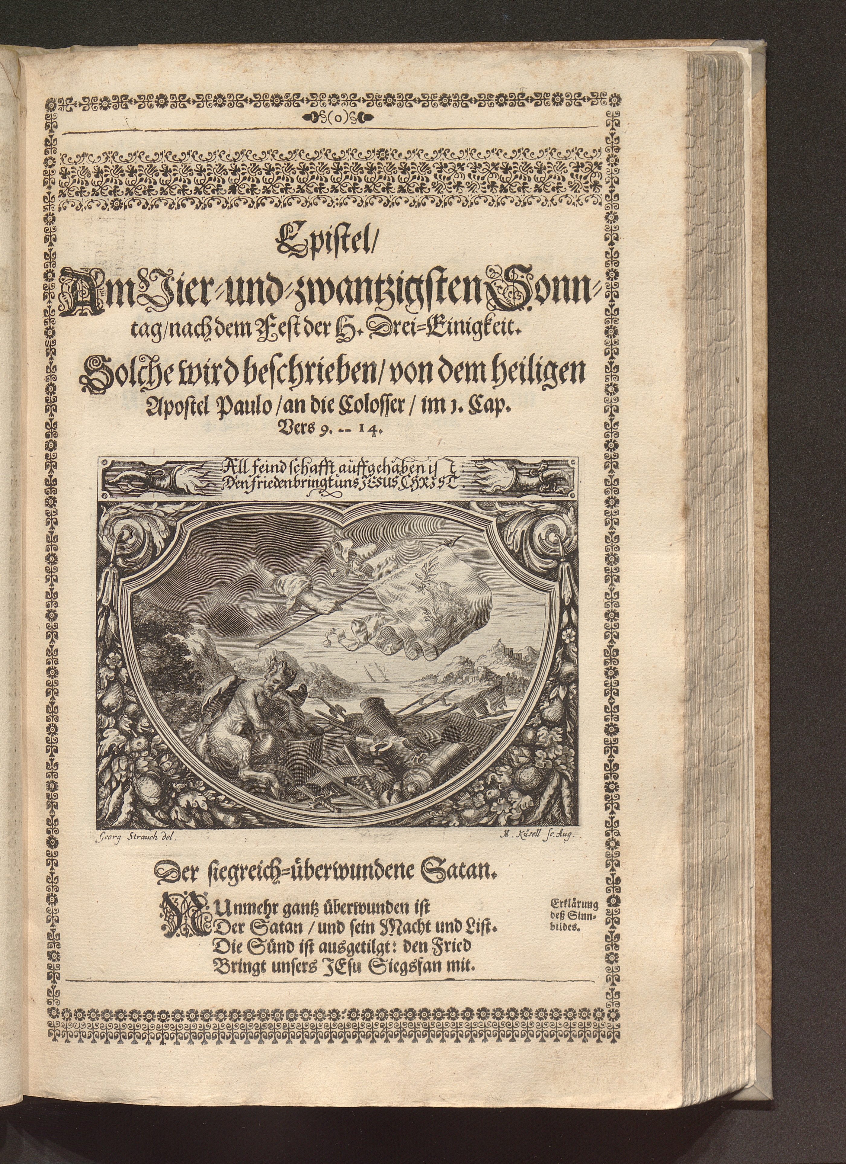 Heilig-Epistolischer Bericht und Licht / I. M. D. Inv. Georg Strauch delineavit. Melchior Küsell sculps.