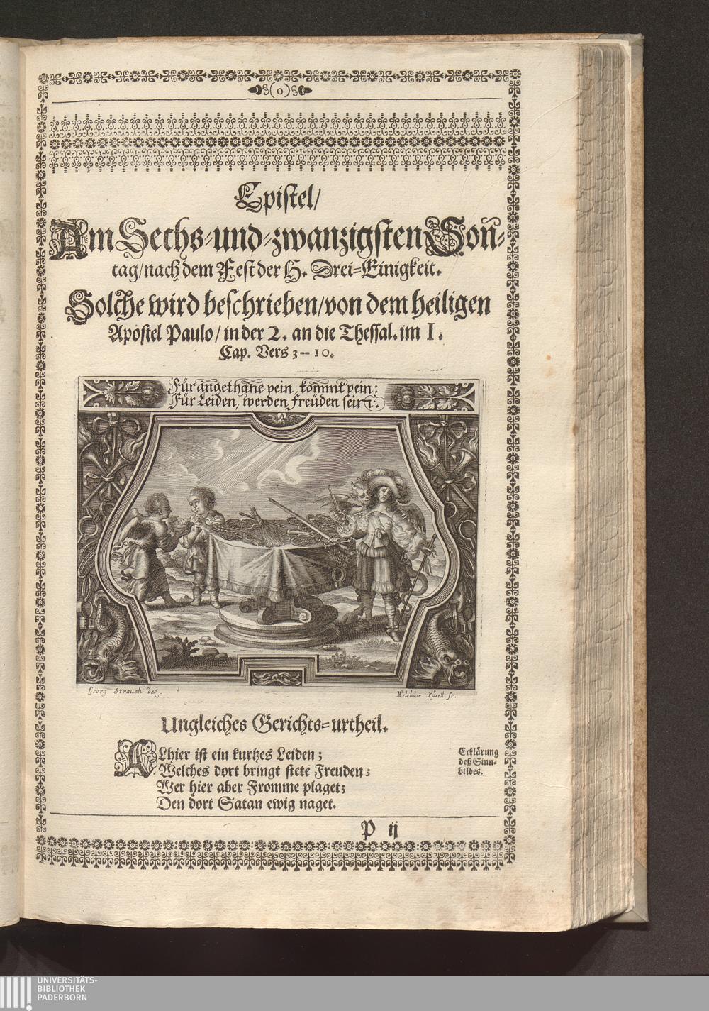 Heilig-Epistolischer Bericht und Licht / I. M. D. Inv. Georg Strauch delineavit. Melchior Küsell sculps.