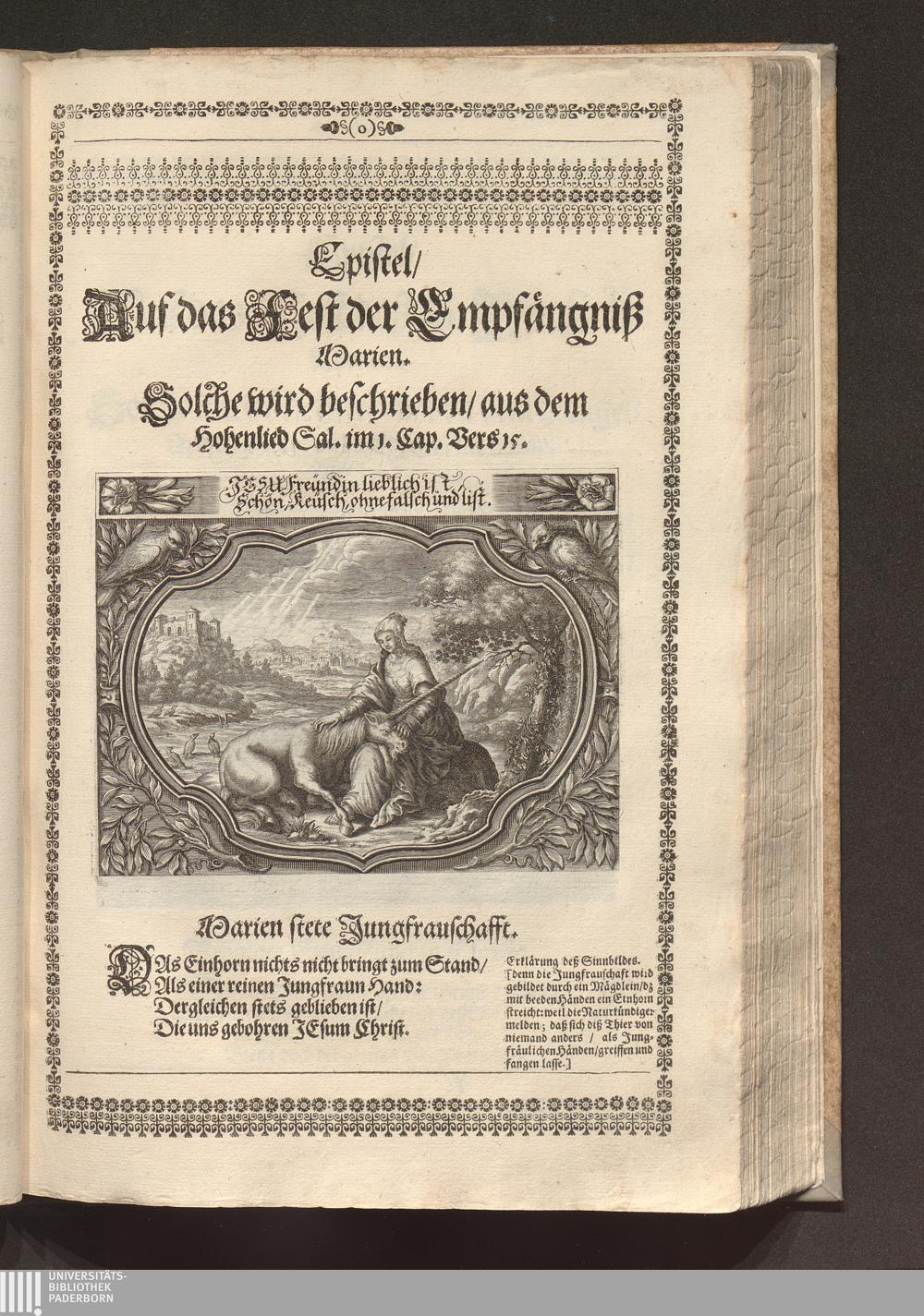 Epistel/ Auf das Fest der Empfängniß Marien.