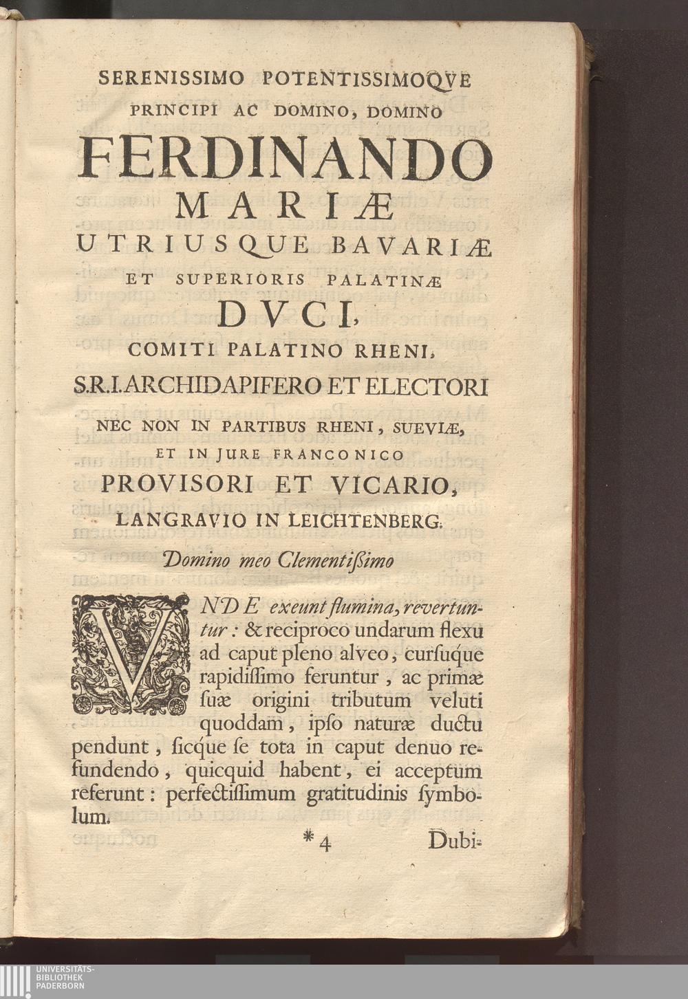 Serenissimo Potentissimoqve Principi Ac Domino, Domino Ferdinando Mariæ Utriusque[...]