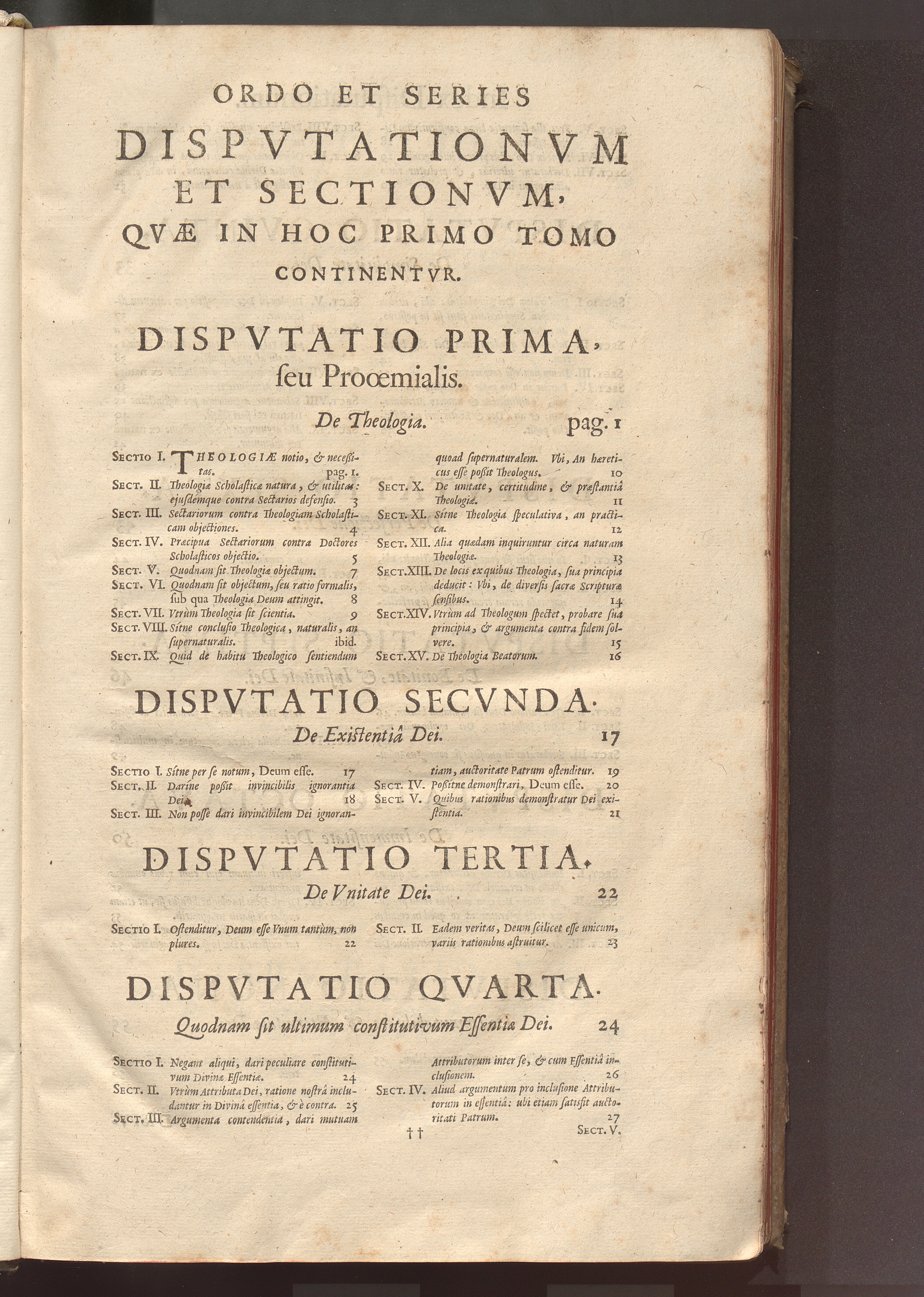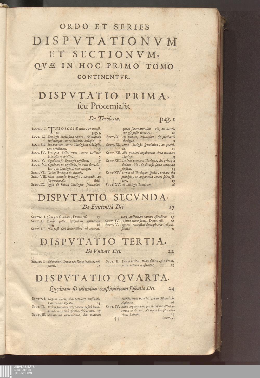 Ordo Et Series Dispvtationvm Et Sectionvm, Qvæ In Hoc Primo Tomo Continentvr.