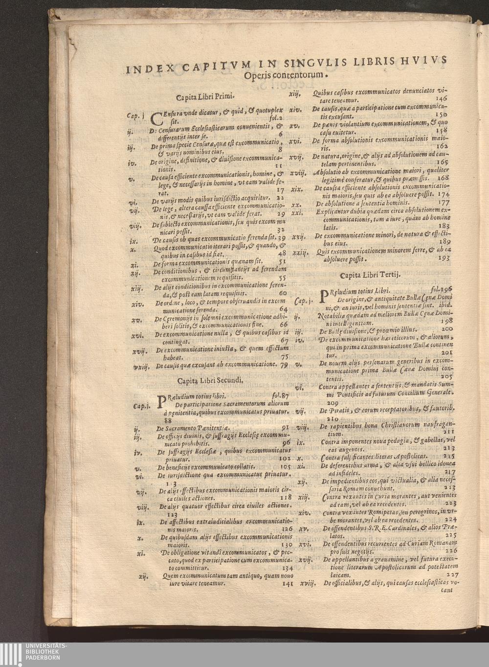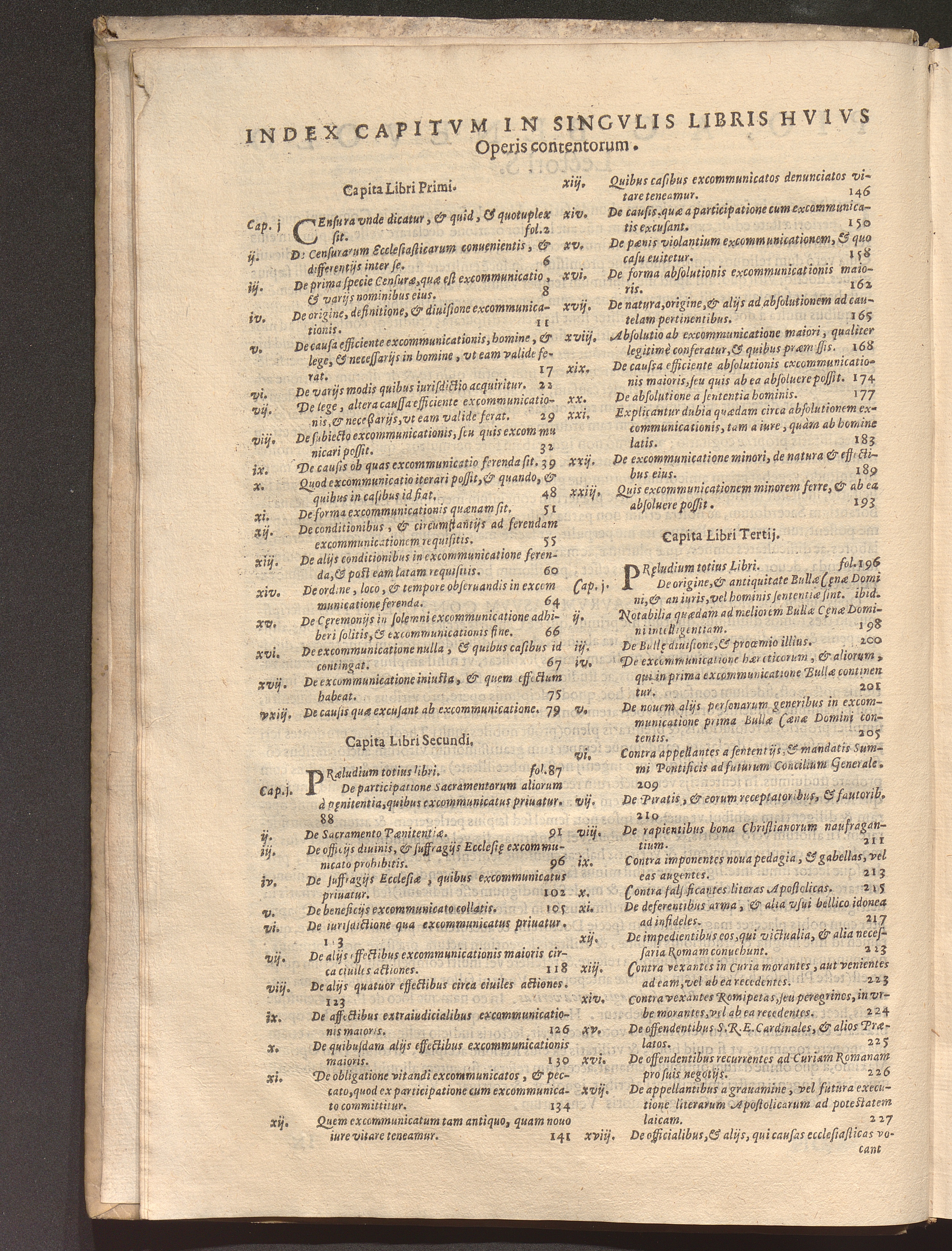 Index Capitvm In Singvlis Libris Hvivs Operis contentorum.