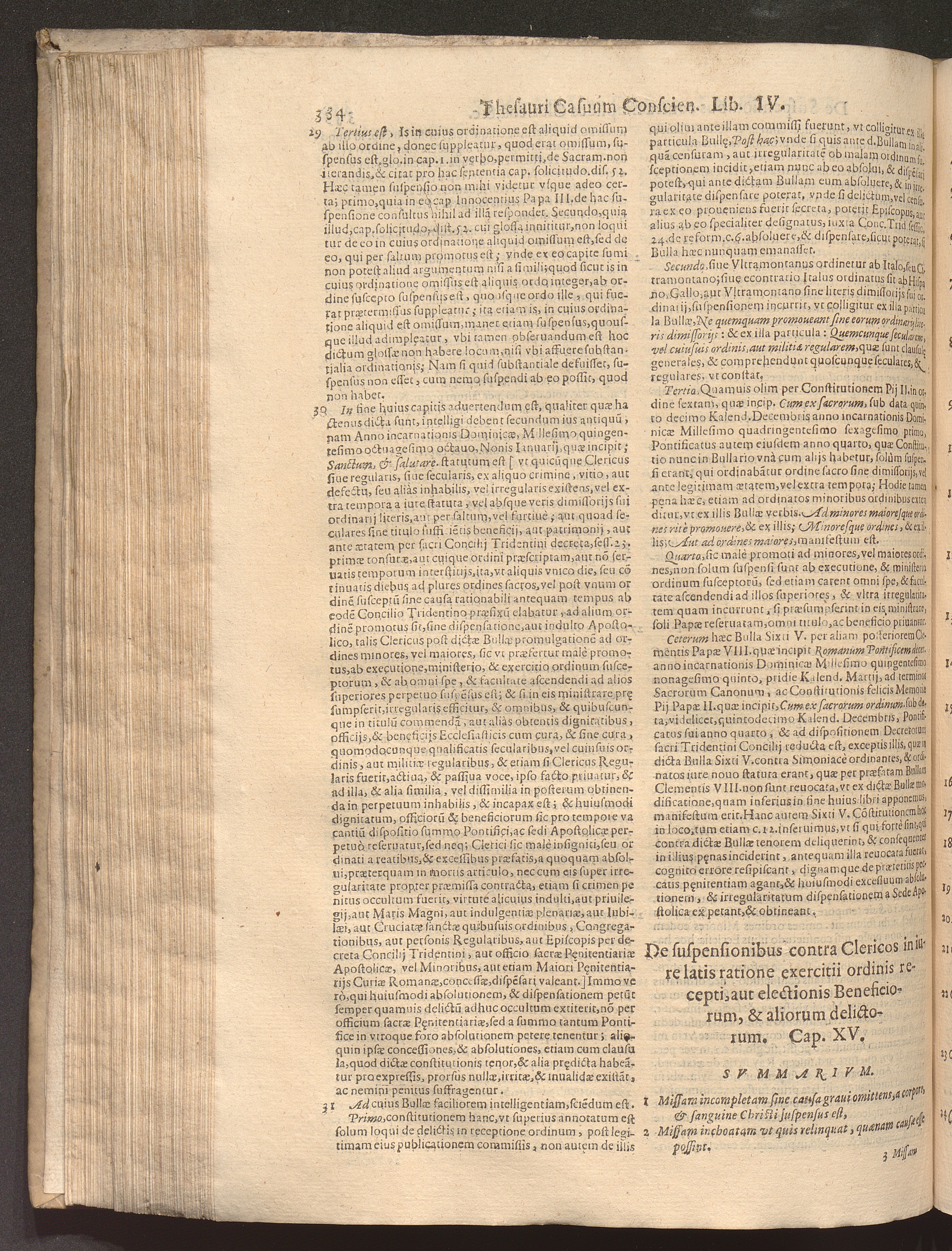 xv. De suspensionibus contra clericos in iure latis ratione exercicij ordinis recepti,[...]