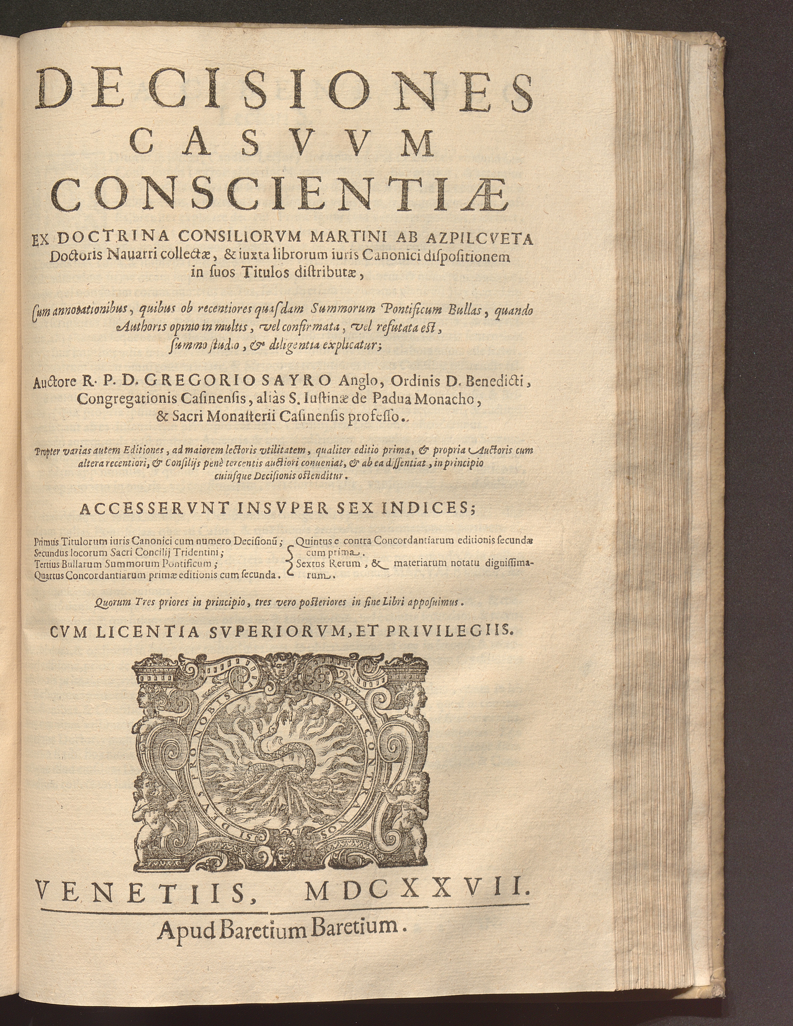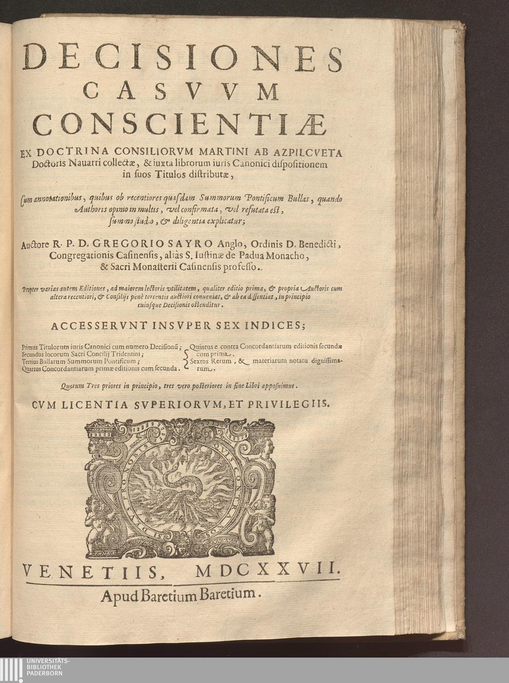 [2] (1627) Decisiones Casvvm Conscientiæ Ex Doctrina Consiliorvm Martini Ab Azpilcveta Doctoris Nauarri collectæ, & iuxta librorum iuris Canonici dispositionem in suos Titulos distributæ
