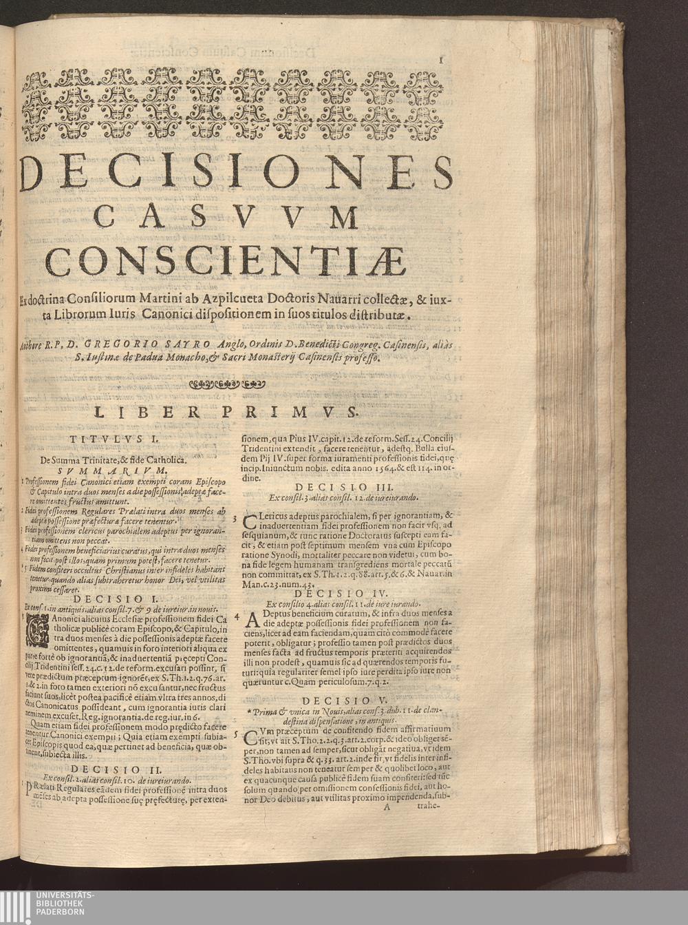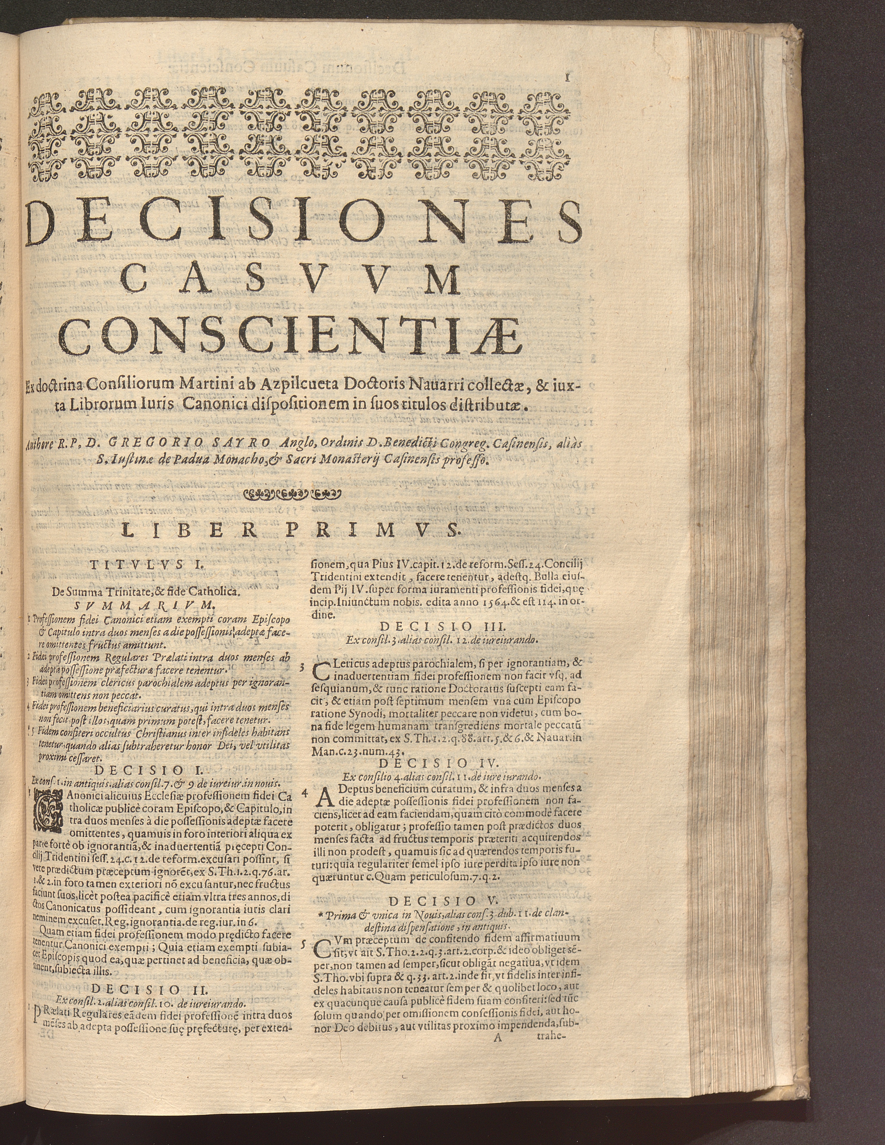 [2] (1627) Decisiones Casvvm Conscientiæ Ex Doctrina Consiliorvm Martini Ab Azpilcveta Doctoris Nauarri collectæ, & iuxta librorum iuris Canonici dispositionem in suos Titulos distributæ