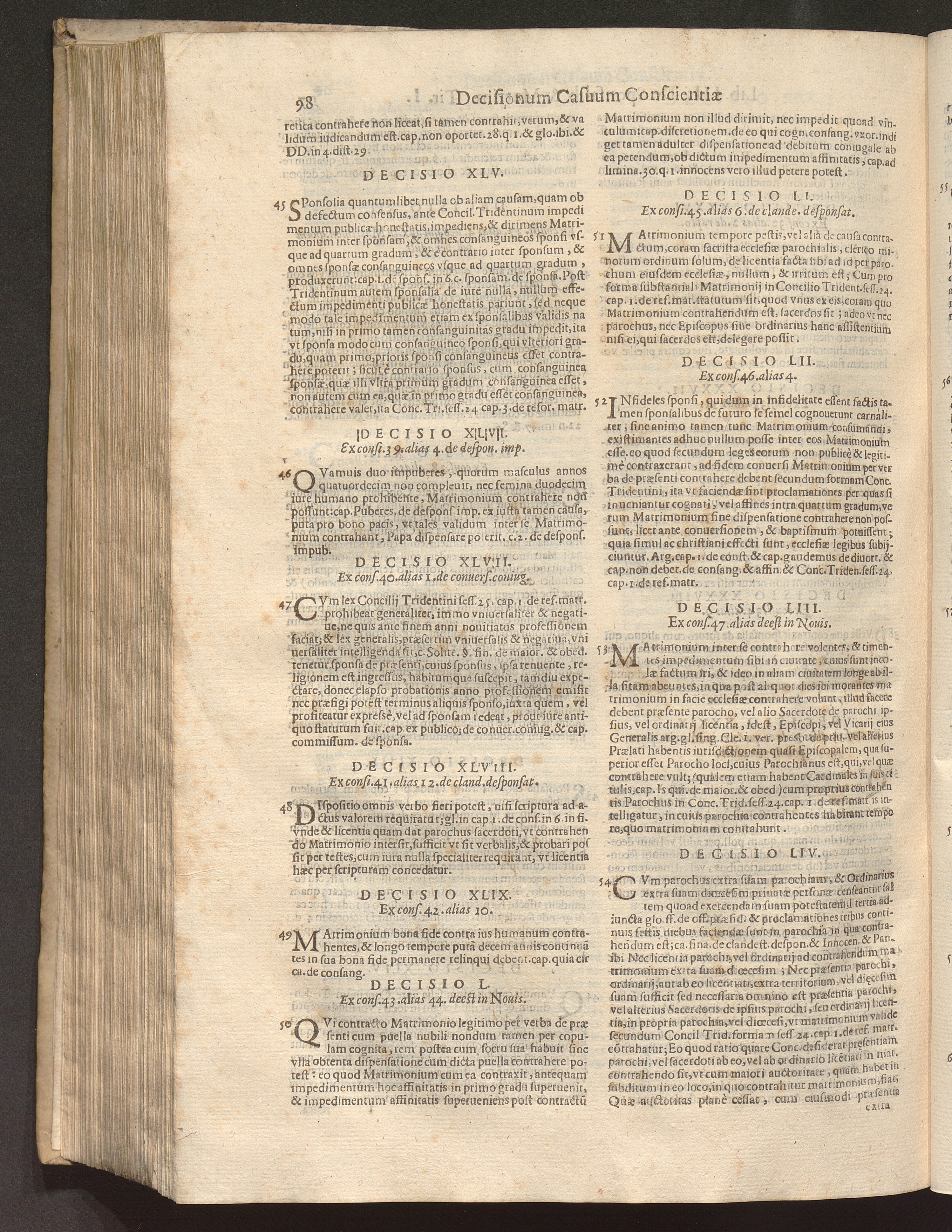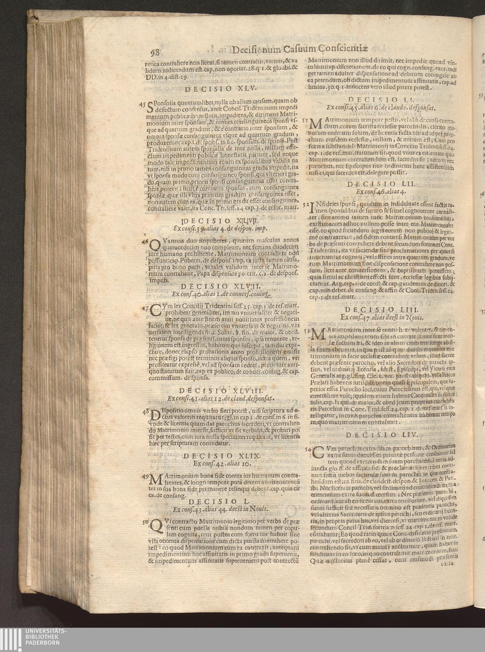 54 Parochus, vel alius sacerdos, de illius, vel ordinarij licentia, cur matrimonijs[...]