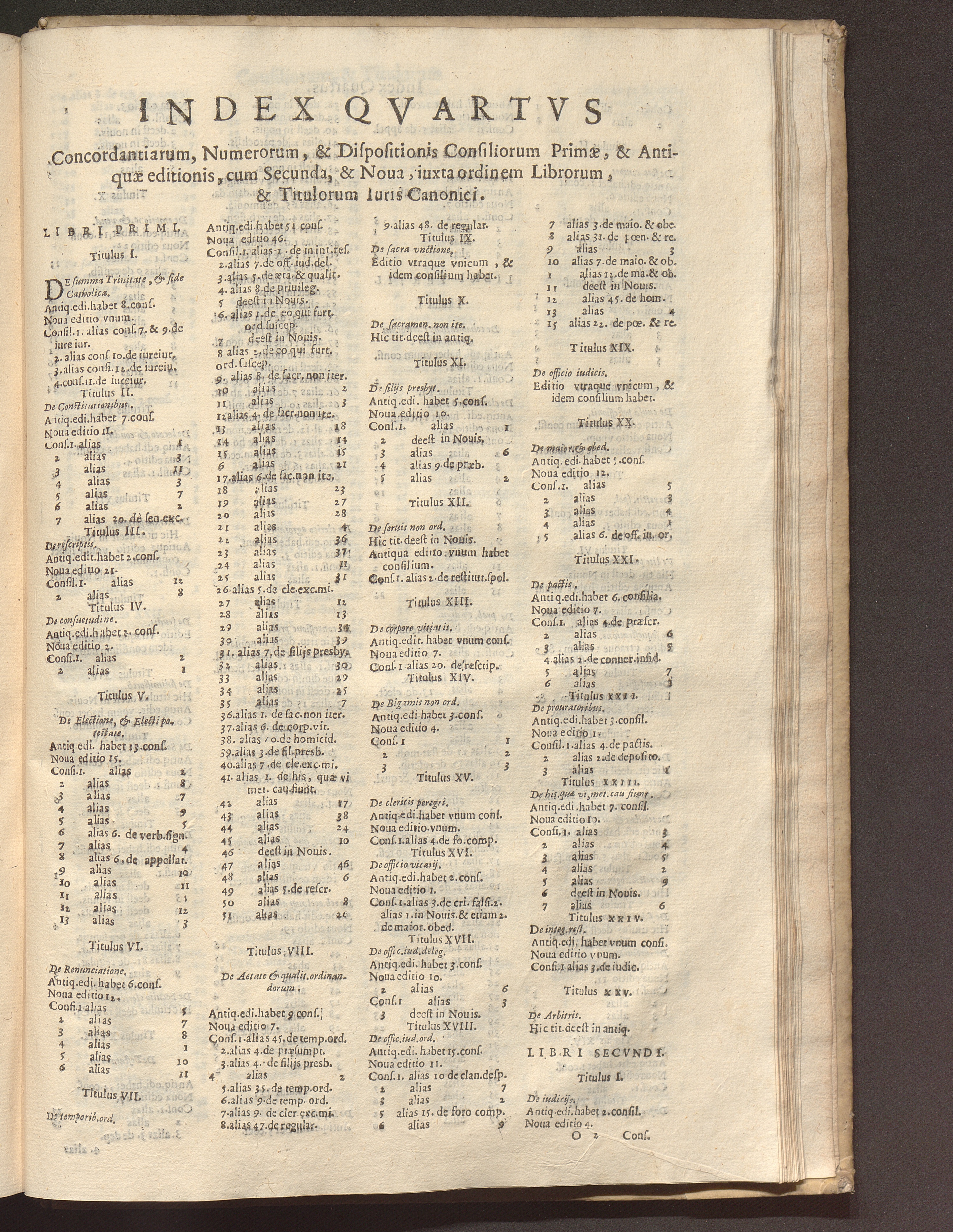 Index Qvartvs Concordantiarum, Numerorum, & Dispositionis Consiliorum Primae, & Antiquae[...]
