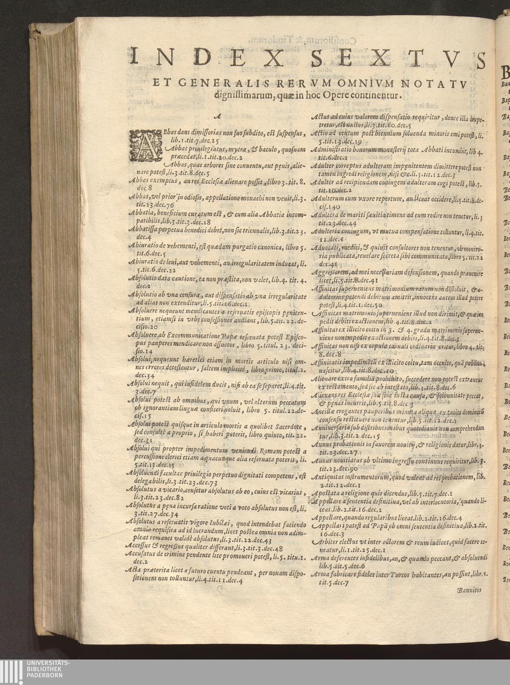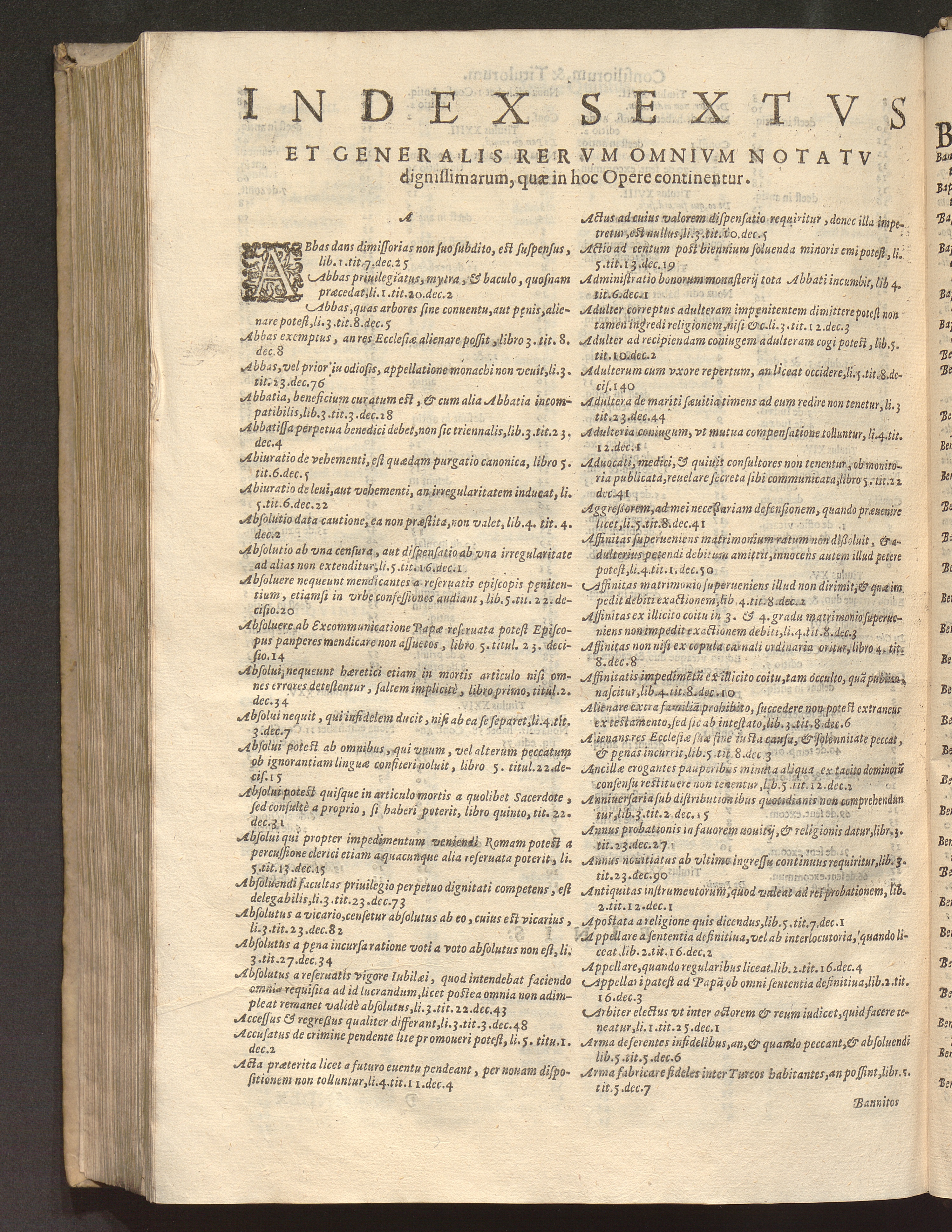 Index Sextvs Et Generalis Rervm Omnivm Notatv dignissimarum, quae in hoc Opere c[...]