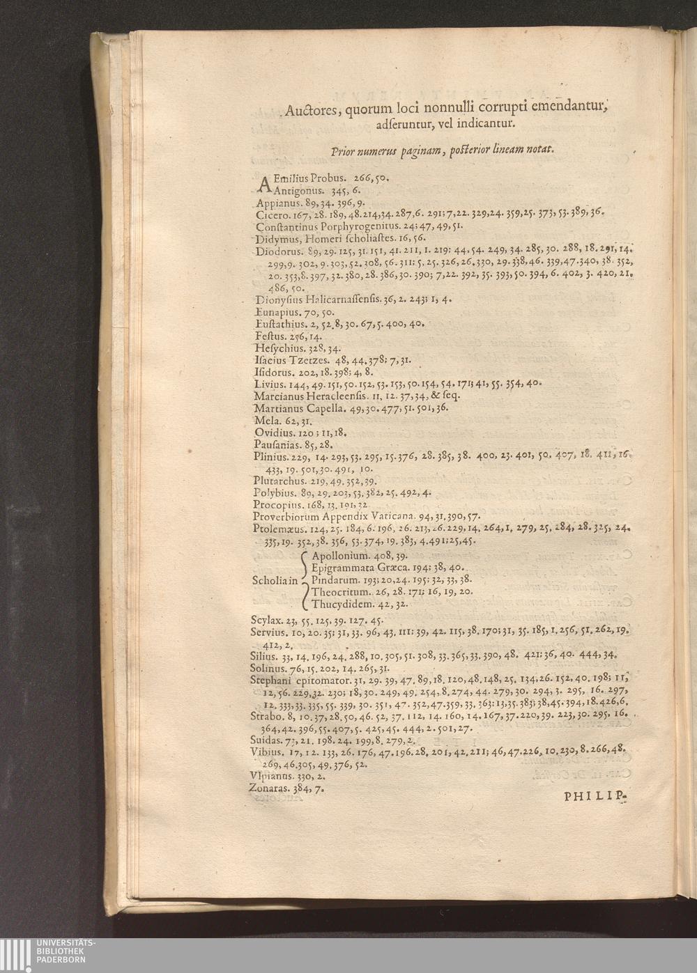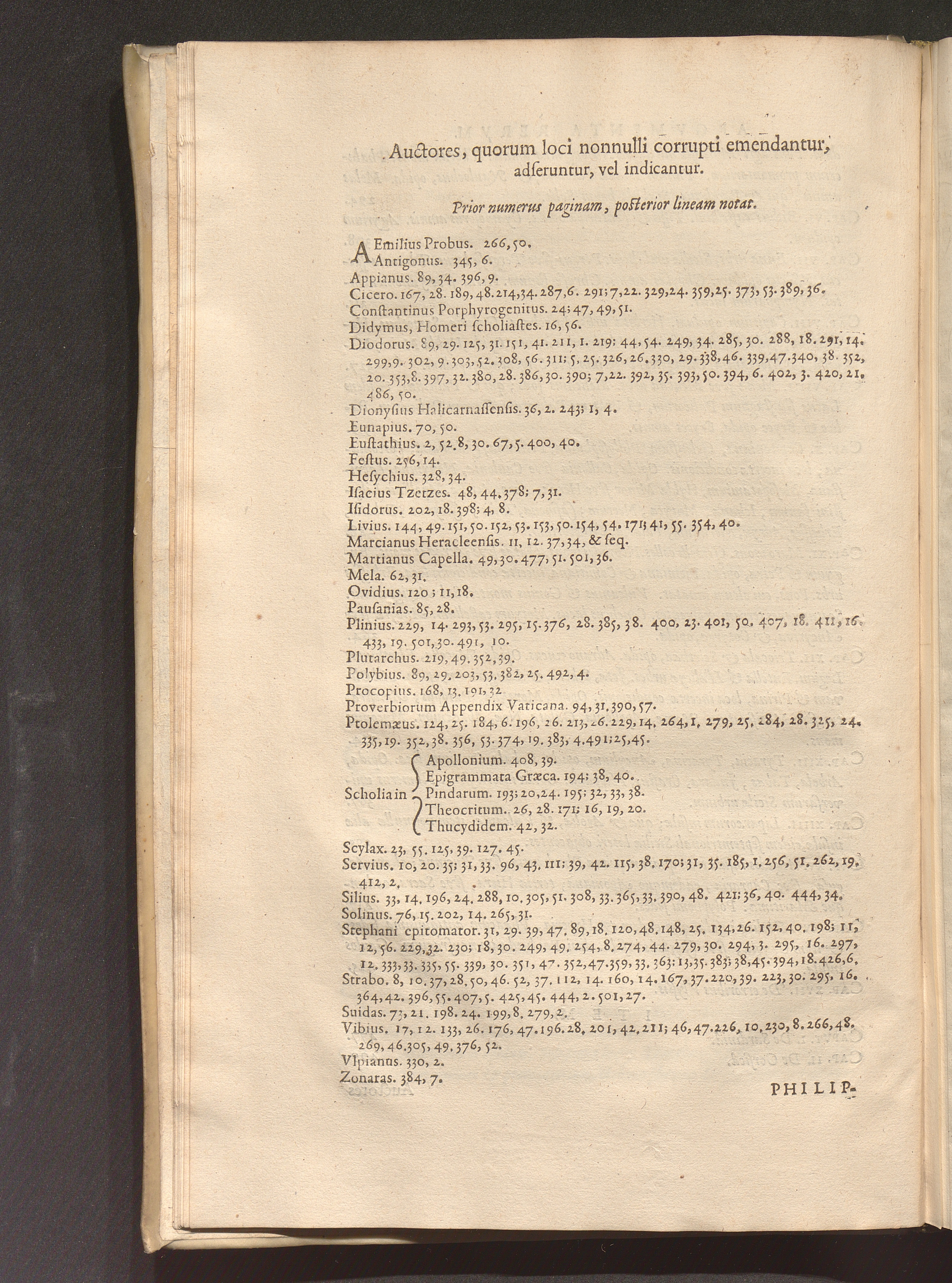 Auctores, quorum loci nonnulli corrupti emendantur, adseruntur, vel indicantur.