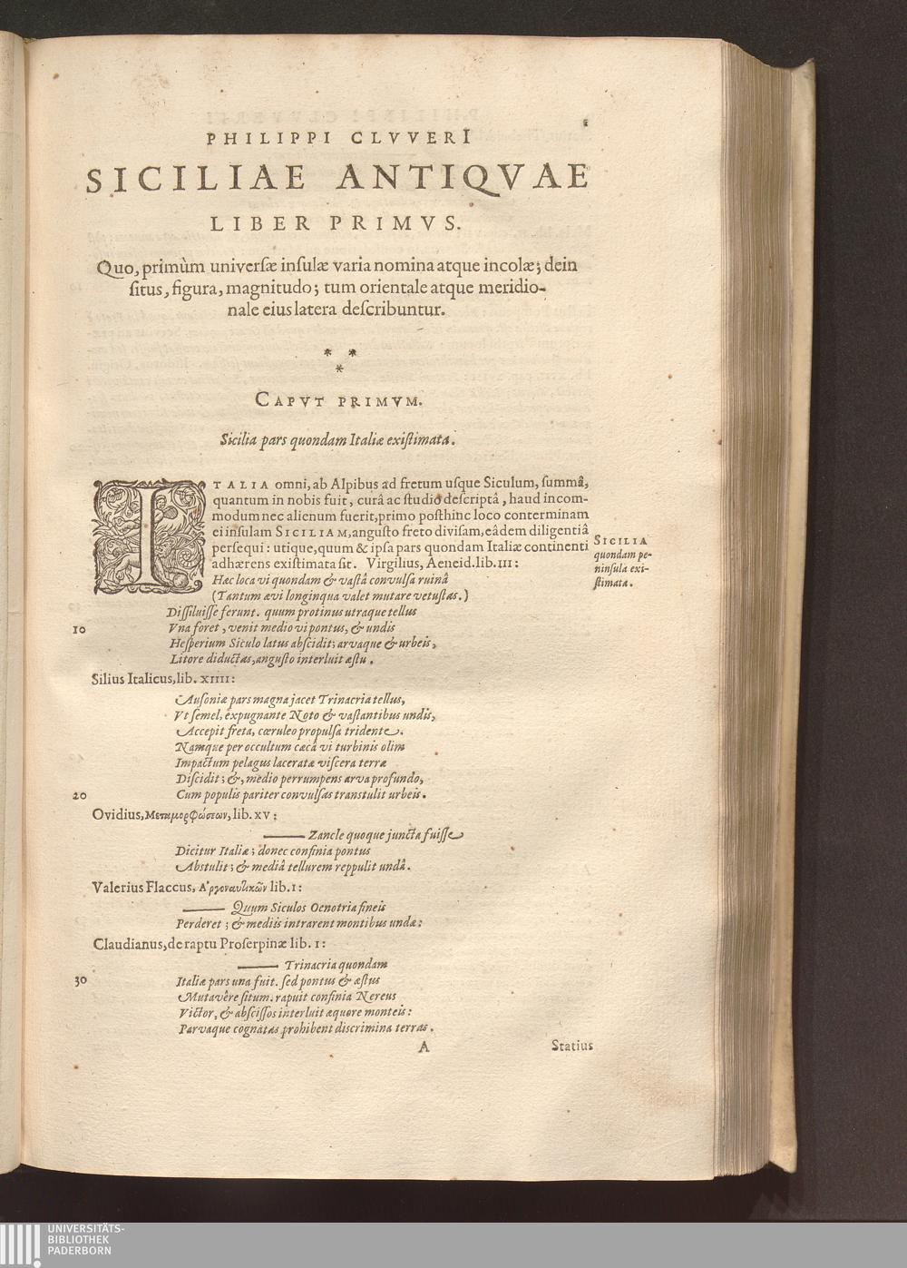 Liber Primvs. Quo, primùm universae insulae Siciliae varia nomina atque incolae;[...]
