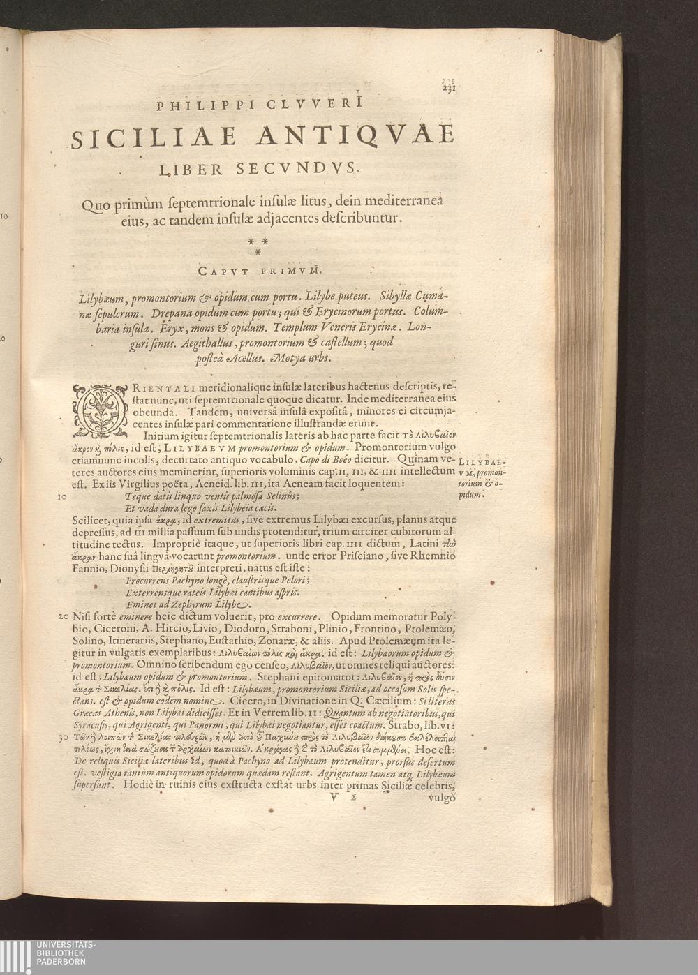 Capvt I. Lilybaeum promontorium & opidum cum portu. Lilybe puteus. Sibyllae Cumanae[...]