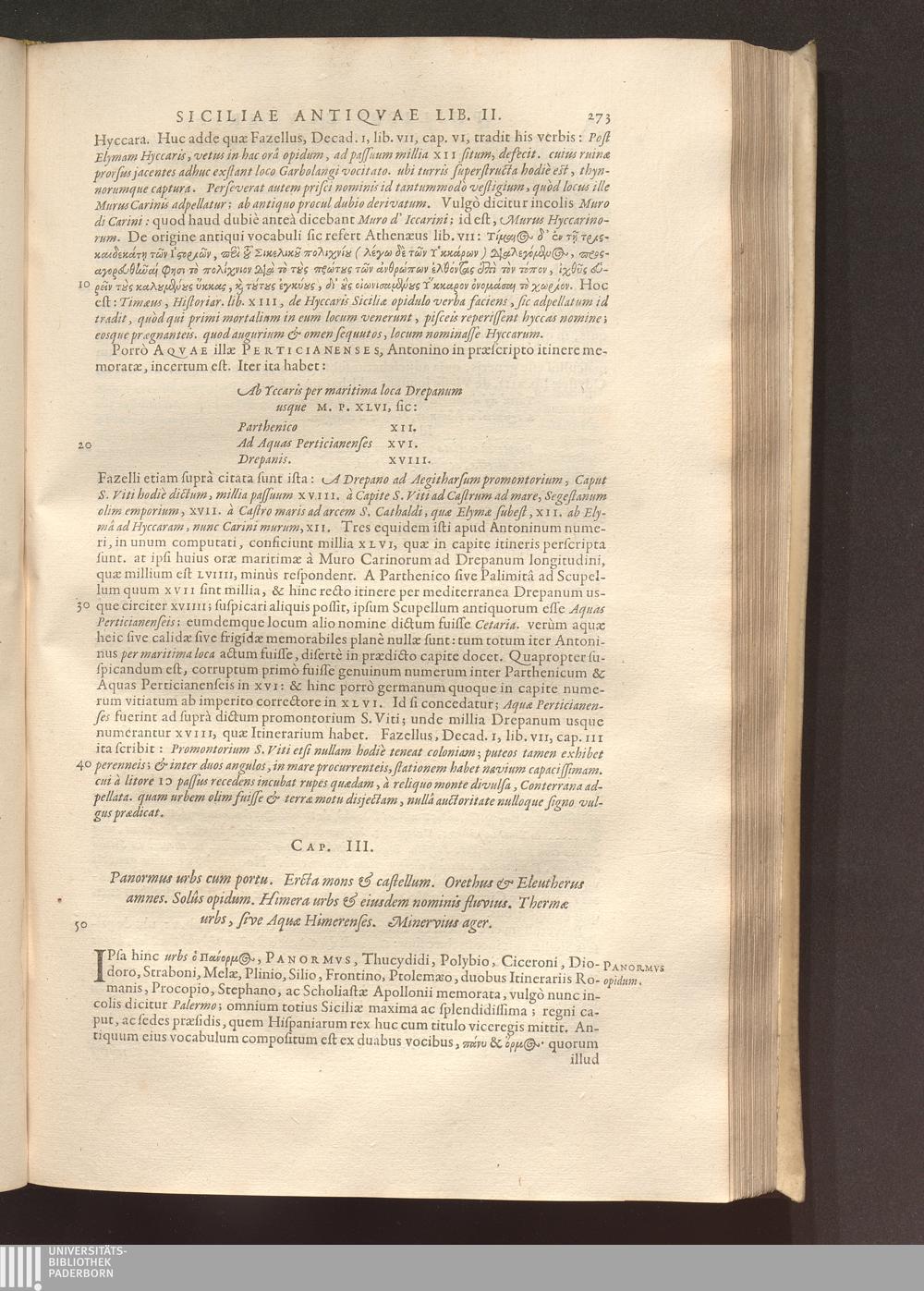 Cap. III. Panormus urbs cum portu. Ercta mons & castellum. Orethus & Eleutherus amnes.[...]