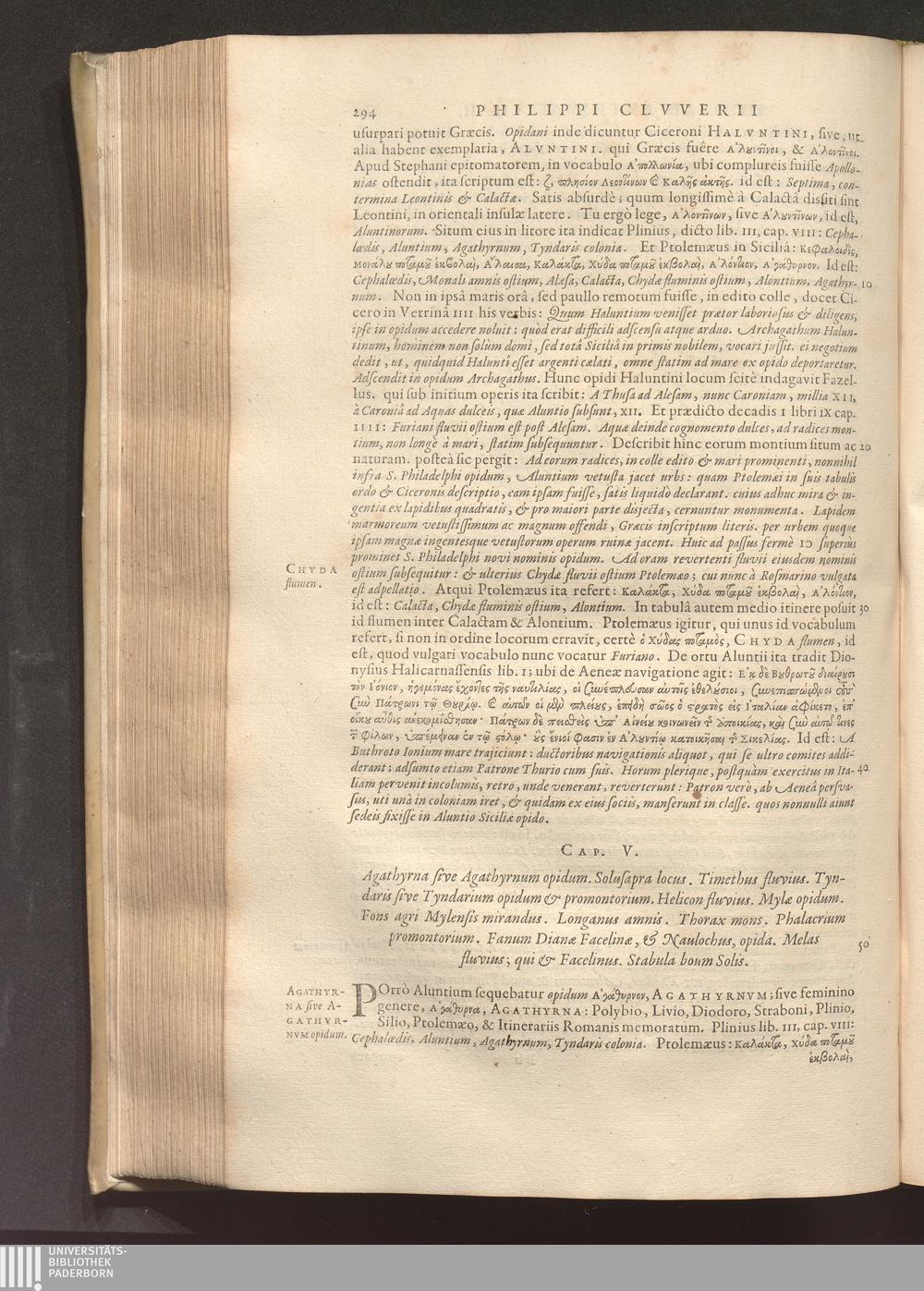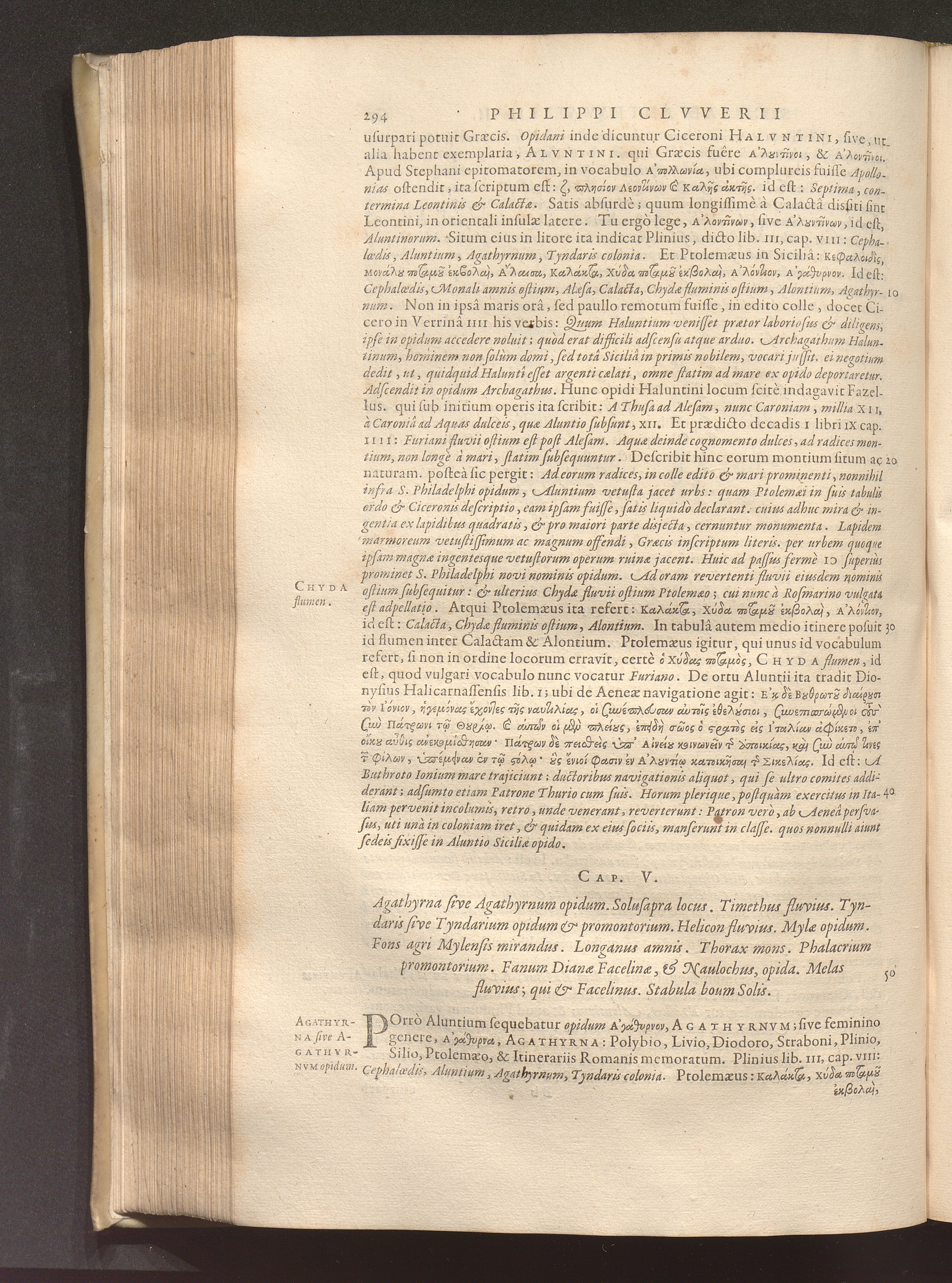 Cap. V. Agathyrnum opidum. Solusapra locus. Timethus fluvius. Tyndaris sive Tyndarium[...]