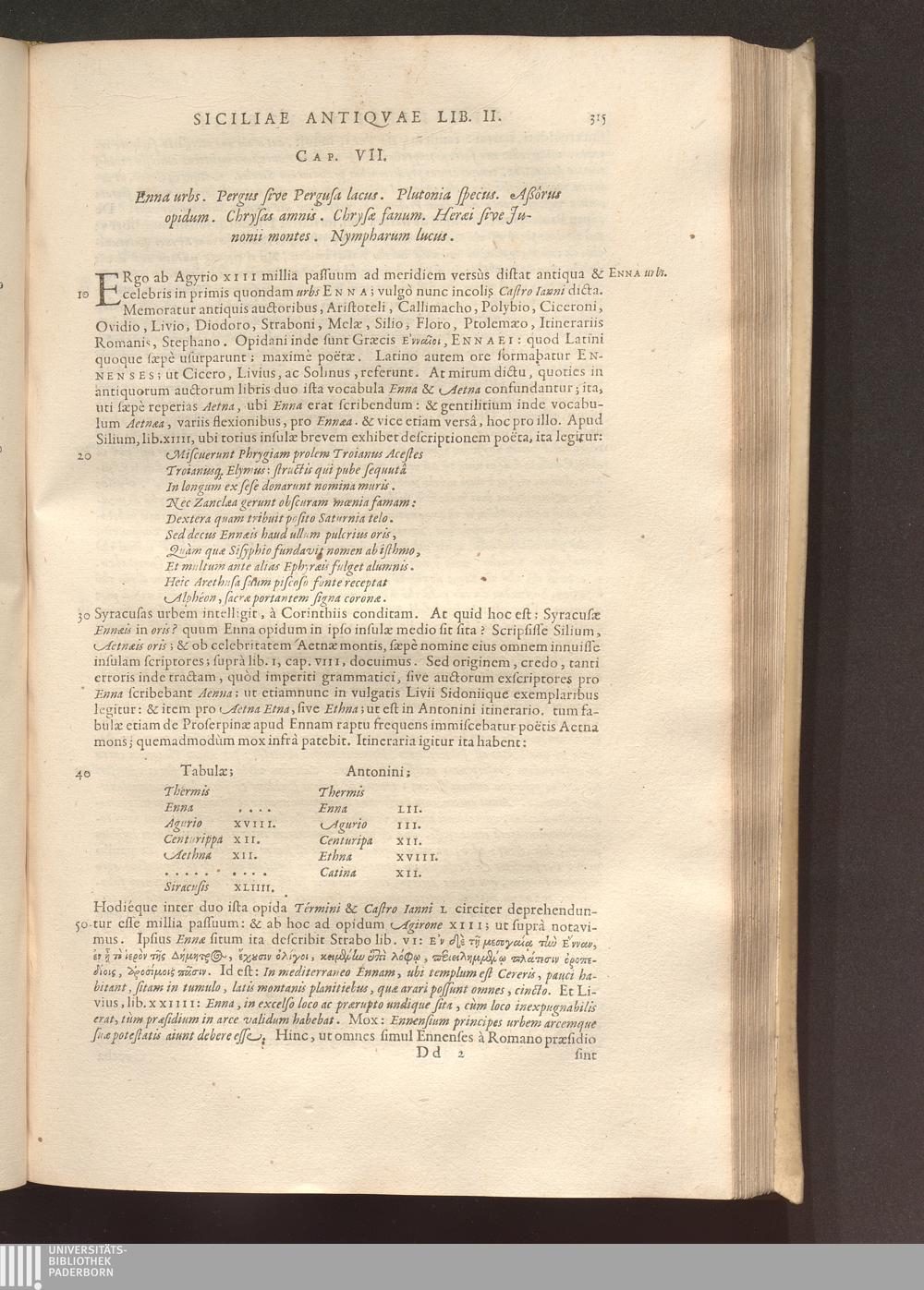 Cap. VII. Enna urbs, Siciliae umbilicus. Pergus sive Pergusa lacus. Plutonia specus.[...]