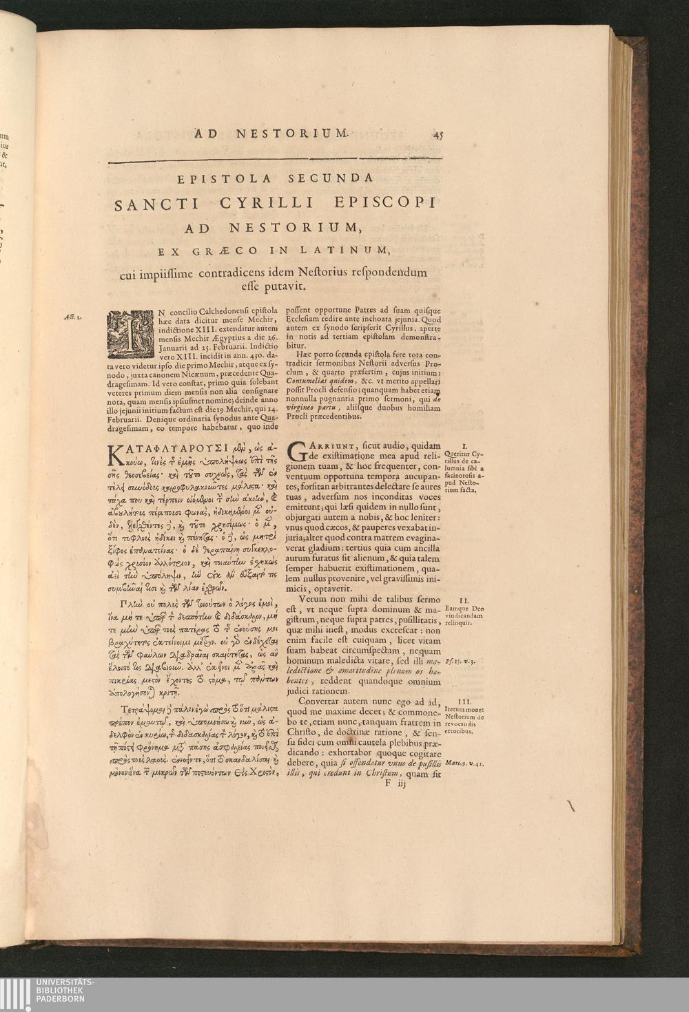 Epistola Secunda Sancti Cyrilli Episcopi Ad Nestorium, Ex Graeco In Latinum, cui[...]