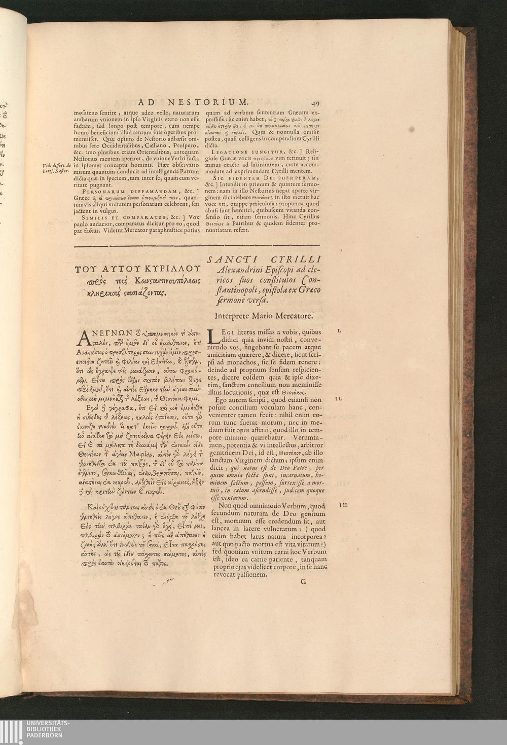 Sancti Cyrilli Alexandrini Episcopi ad clericos suos constitutos Constantinopoli,[...]