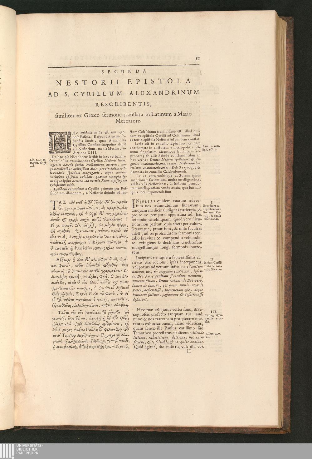 Secunda Nestorii Epistola Ad S. Cyrillum Alexandrinum Rescribentis, similiter ex[...]