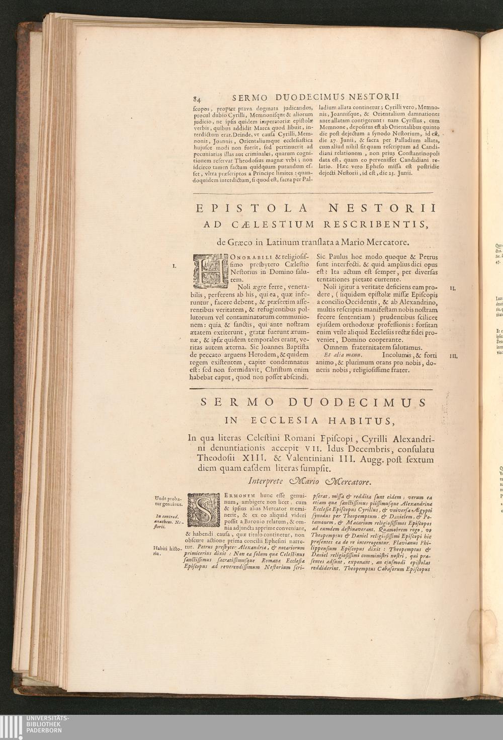 Sermo Duodecimus In Ecclesia Habitus, In qua literas Celestini Romani Episcopi, Cyrilli[...]