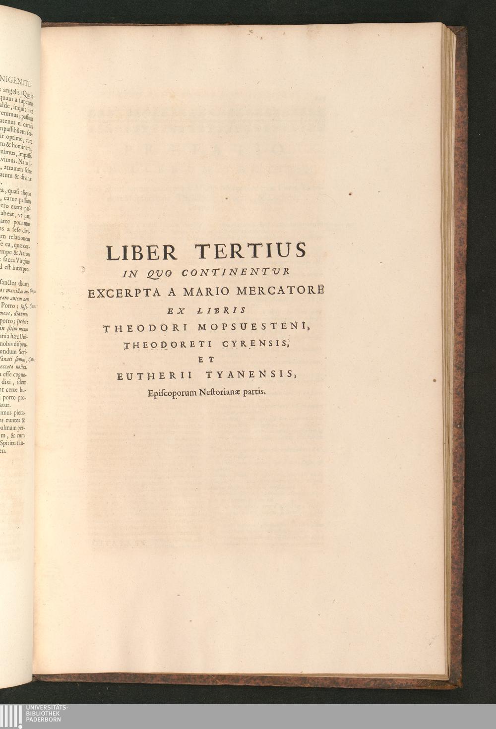 Liber Tertius In Qvo Continentvr Excerpta A Mario Mercatore Ex Libris Theodori Mopsuesteni,[...]