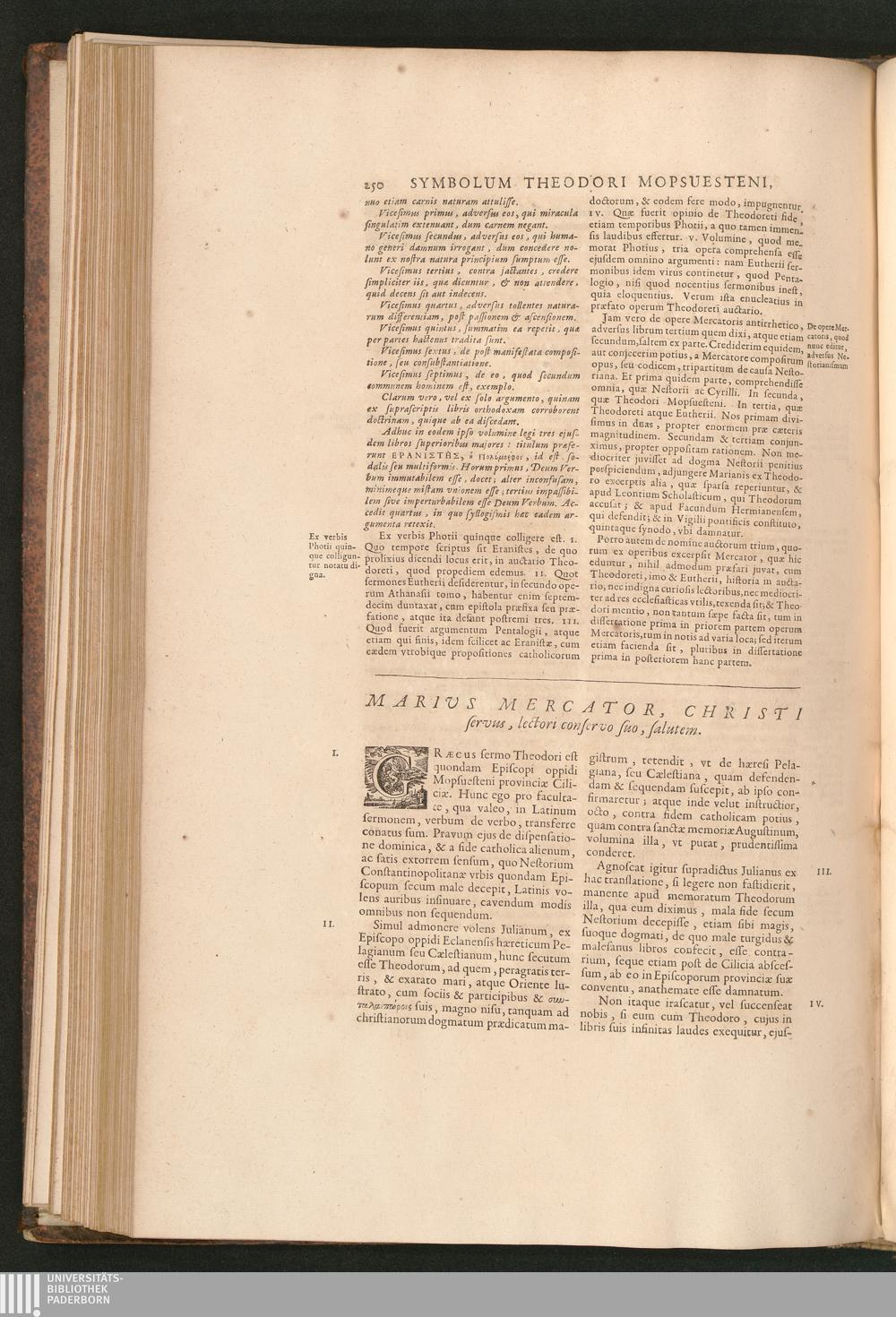 Liber Tertius In Qvo Continentvr Excerpta A Mario Mercatore Ex Libris Theodori Mopsuesteni,[...]