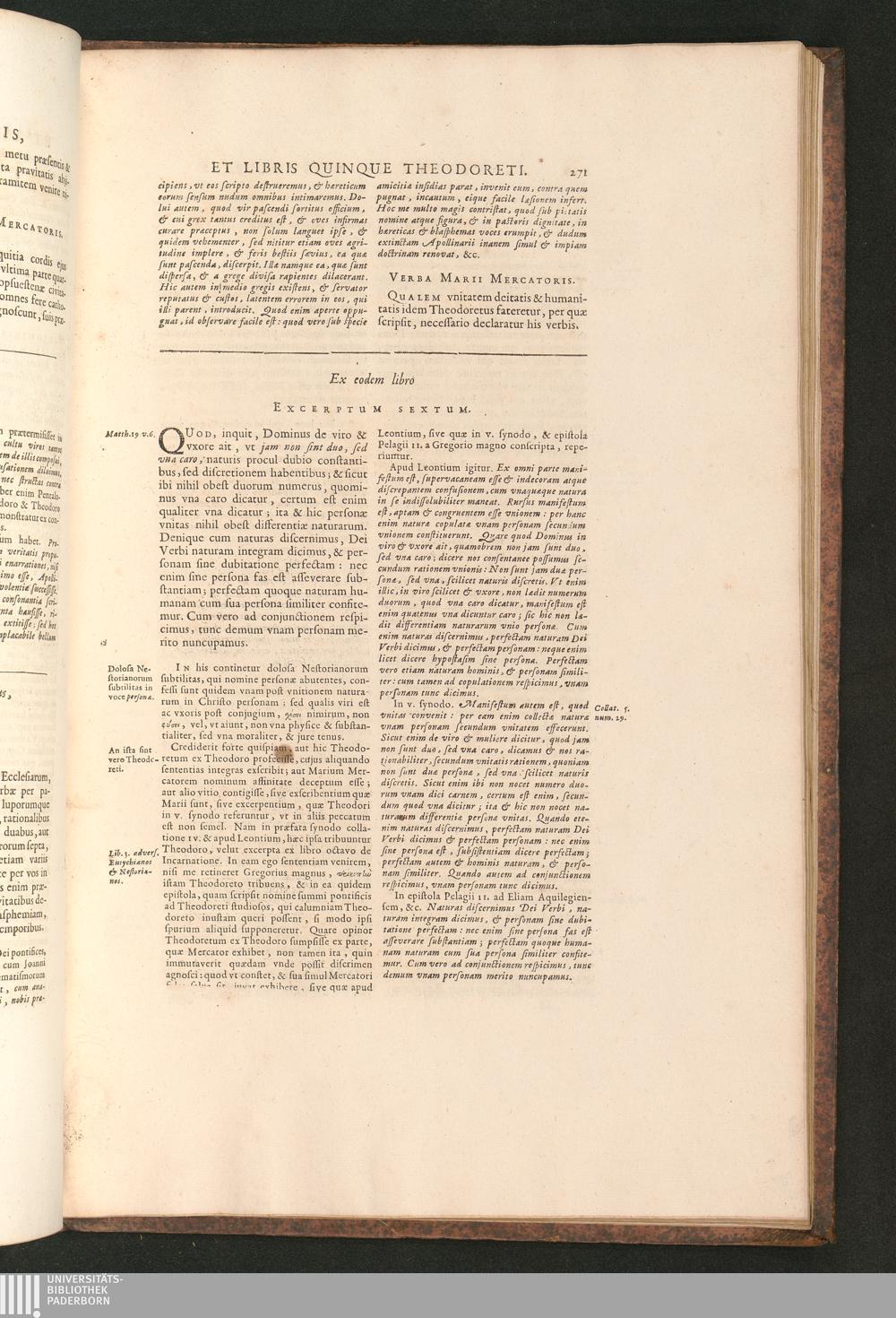 Liber Tertius In Qvo Continentvr Excerpta A Mario Mercatore Ex Libris Theodori Mopsuesteni,[...]