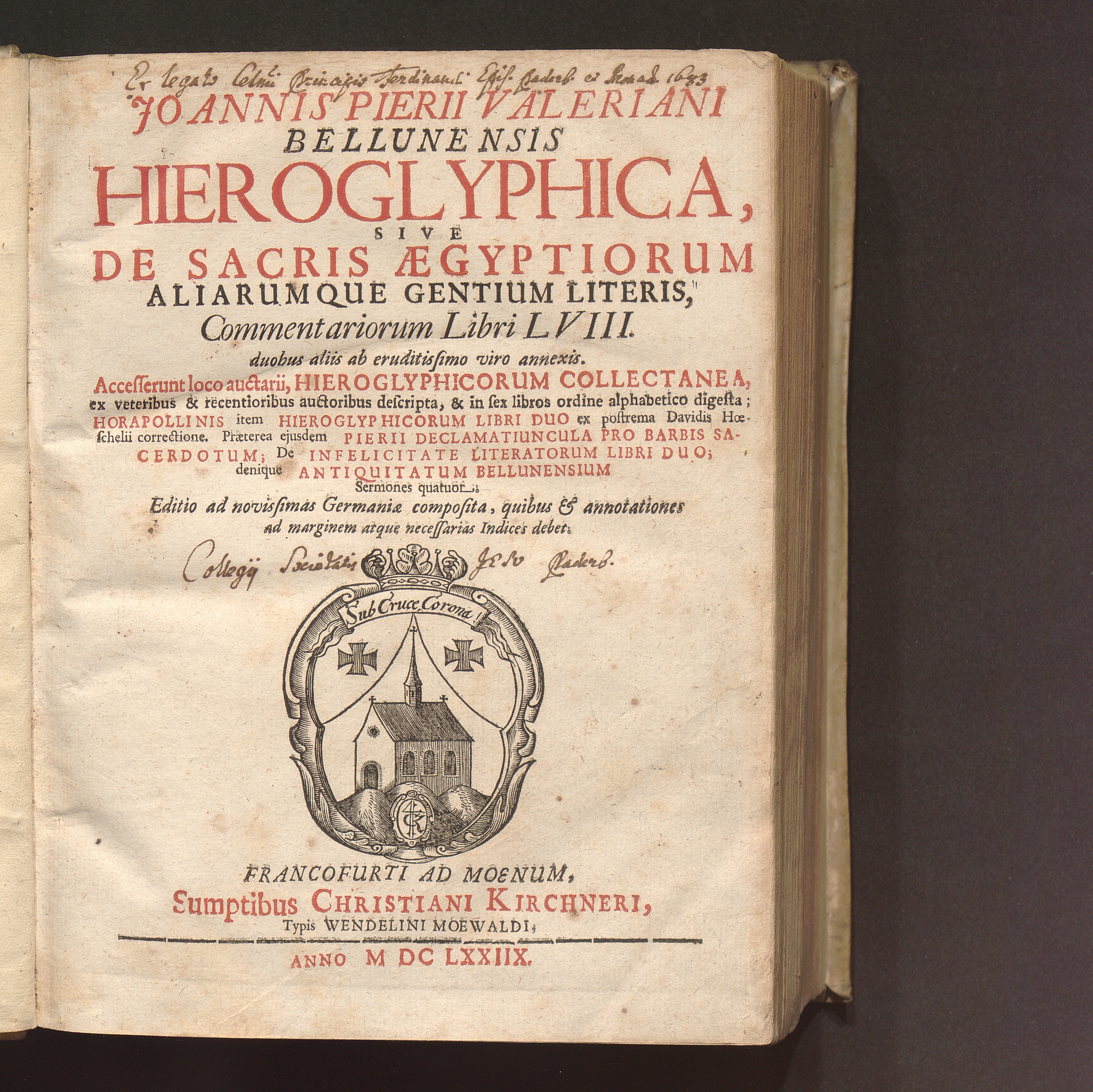 Joannis Pierii Valeriani Bellunensis Hieroglyphica, Sive De Sacris Ægyptiorum Aliarumque Gentium Literis, Commentariorum Libri LVIII : duobus aliis ab eruditissimo viro annexis