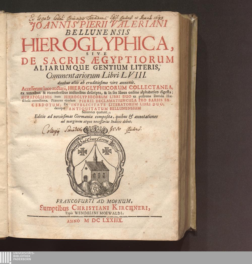 Joannis Pierii Valeriani Bellunensis Hieroglyphica, Sive De Sacris Ægyptiorum Aliarumque[...]