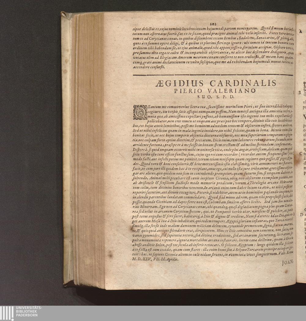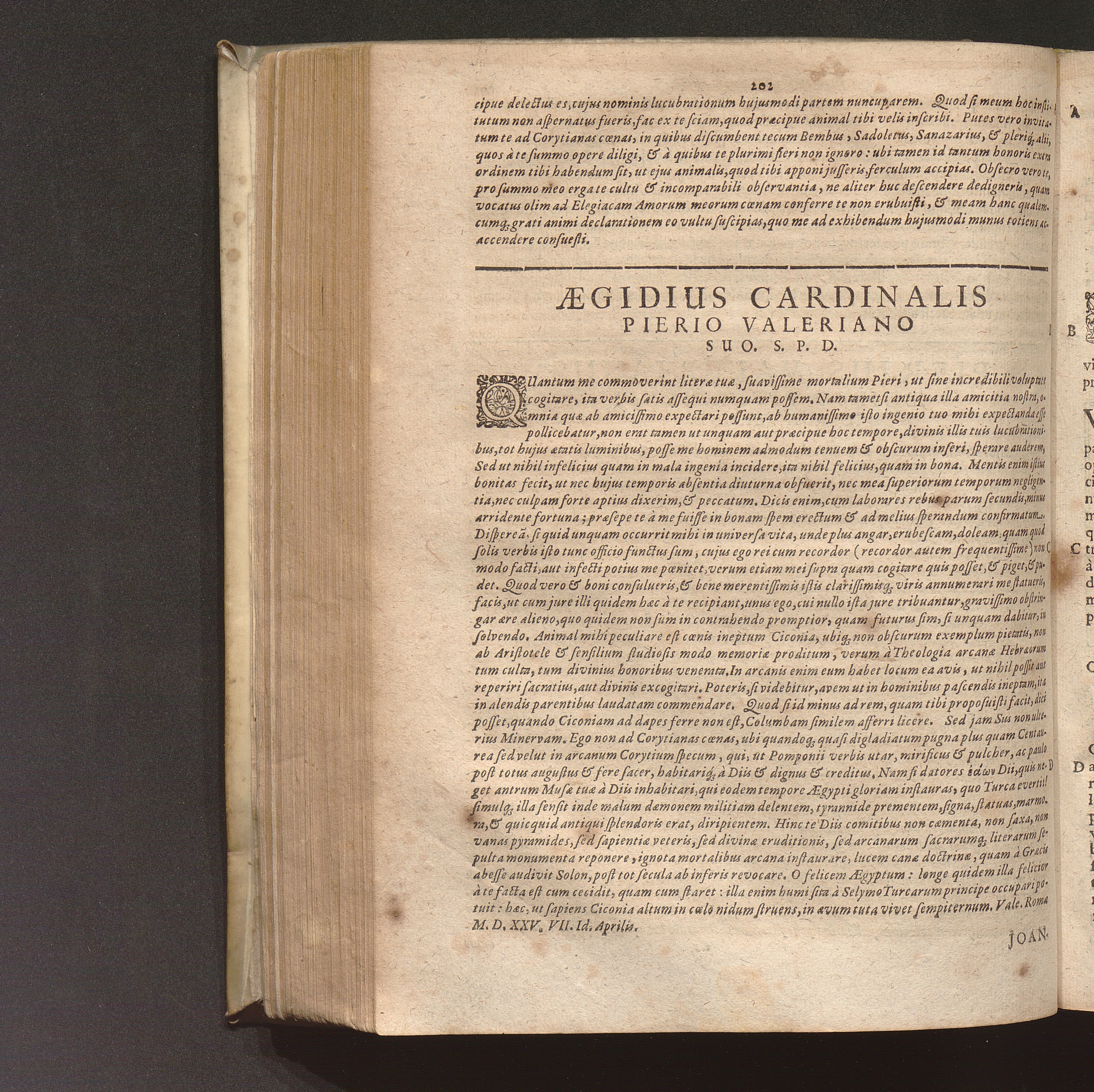 Ægidius Cardinalis Pierio Valeriano Suo S.P.D.