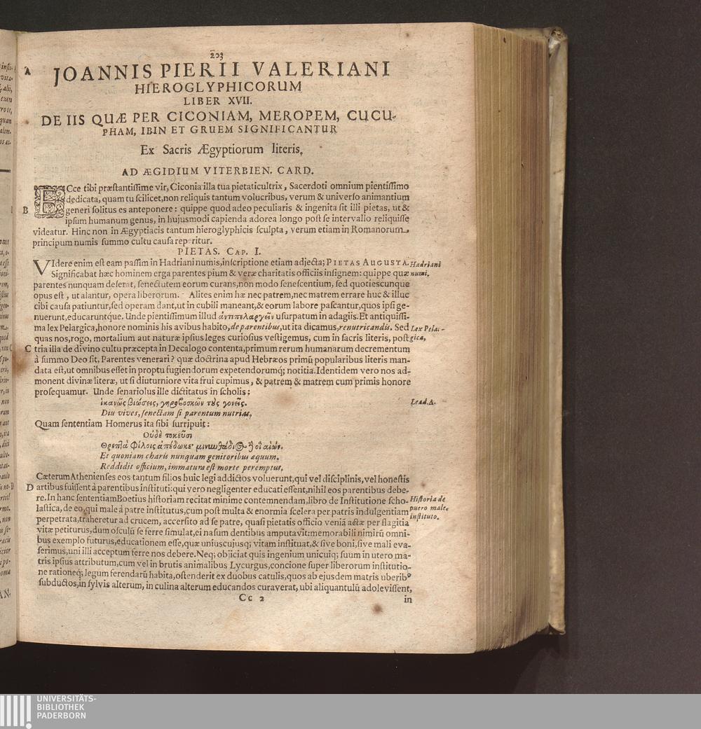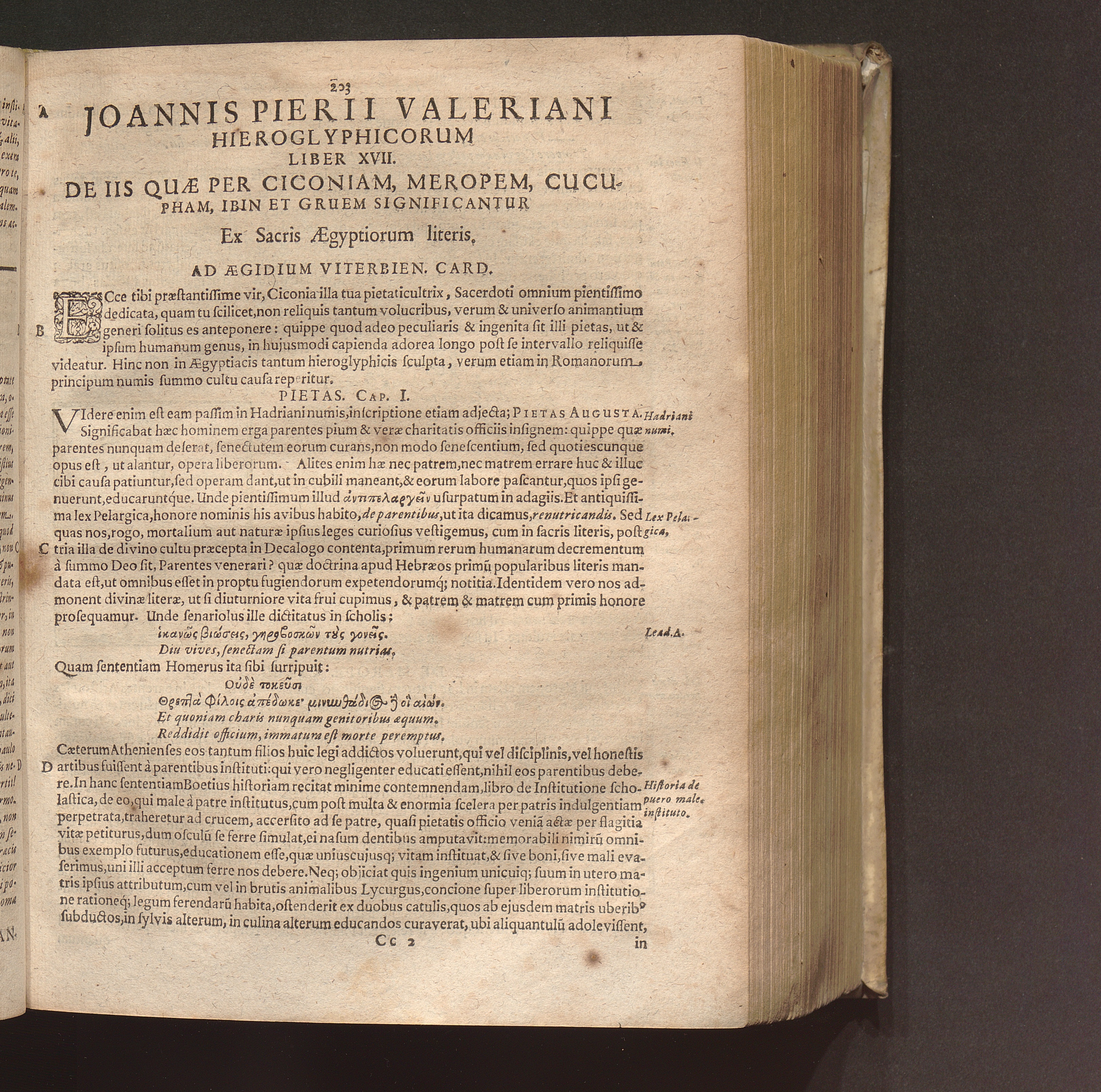 Joannis Pierii Valeriani Bellunensis Hieroglyphica, Sive De Sacris Ægyptiorum Aliarumque Gentium Literis, Commentariorum Libri LVIII : duobus aliis ab eruditissimo viro annexis