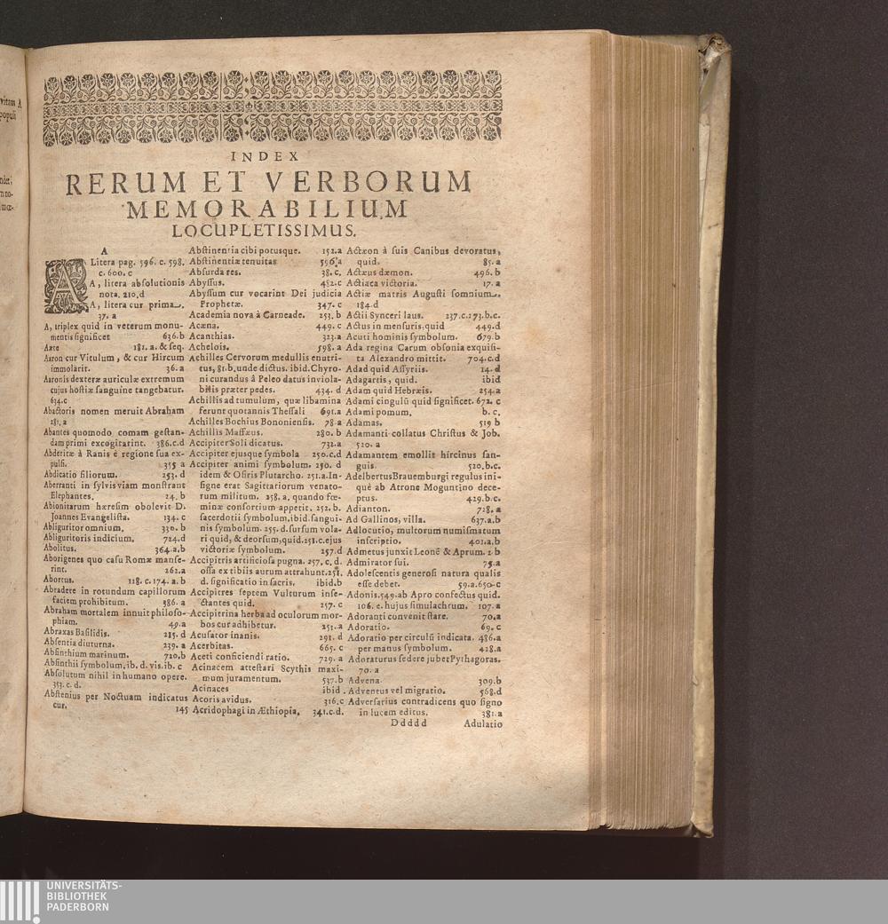 Index Rerum Et Verborum Memorabilium Locupletissimus.