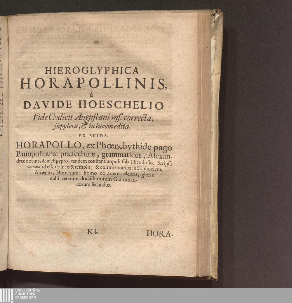Hieroglyphica Horapollinis, à Davide Hoeschelio Fide Codicis Augustani ms. correcta,[...]